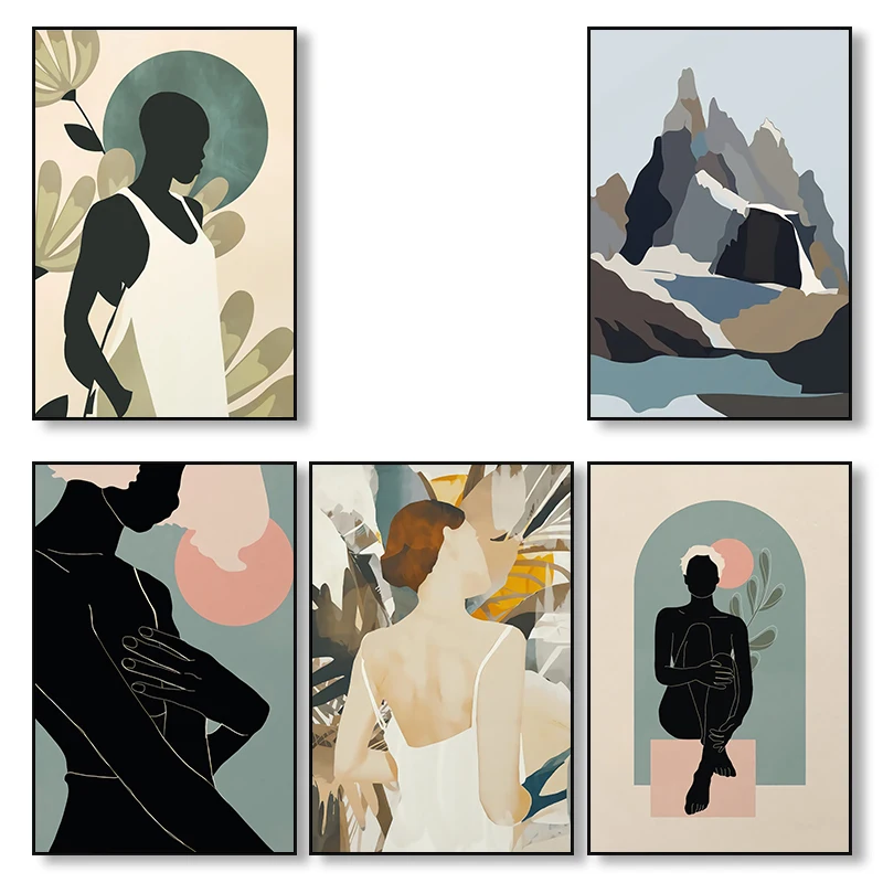 Скандинавская Картина на холсте с изображением абстрактной девушки, галерея, скандинавские бежевые плакаты, печать на стене, картина для гостиной, интерьер, домашний декор