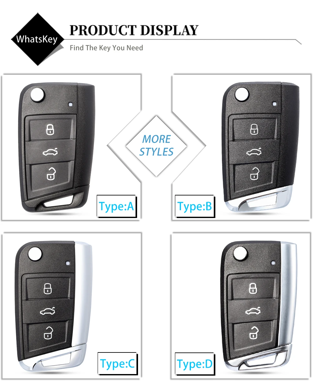 Чехол-книжка WhatsKey для автомобильных ключей, складной, для Volkswagen VW Golf 7 Mk7 Passat Beetle Bora, сиденье для Polo Leon, Skoda Octavia