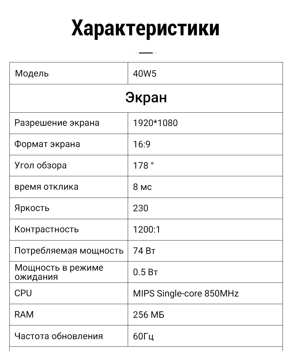 Заказывал 11.11. В СПБ доставили за неделю. Курьер домой принес. "женил" по wi-fi с сеткой Настроил от штатной эфирки и получил 54 канала, удивился). Покурив этот вопрос узнал что у меня в кв интернет с пакетом ip tv. Оператор интернета ПаКт если кому интересно. Поковыряв настройки, выставил поиск -по сети- и получил 164 канала(штатные каналы эфирки обычные + в FHD + спутниковые каналы. И всё это за 240 деревянных в мес(100мб/с + 160 каналов). Брал модель 40w5 на 40 дюймов, мне достаточно. Подключал мобилку к телеку и вроде все гуд, но при 256 mb оперативки есть фризы и подвисания (картинка в фризе, а звук идет как надо). По яркости, контрастности меня всё устраивает. Но 250 кандел за эти деньги ( 12300р) это норм. Запахов едких да и в общем никаких нет. Из доп плюшек есть ютуб( кастрированный), мегогоу, ivi и как бы браузер. Но пользоваться я им не стал. В использовании уже 5 дней. Далее понаблюдаю и дополню. Продавану спасибо. За эти деньги вроде норм характеристики и фарш.