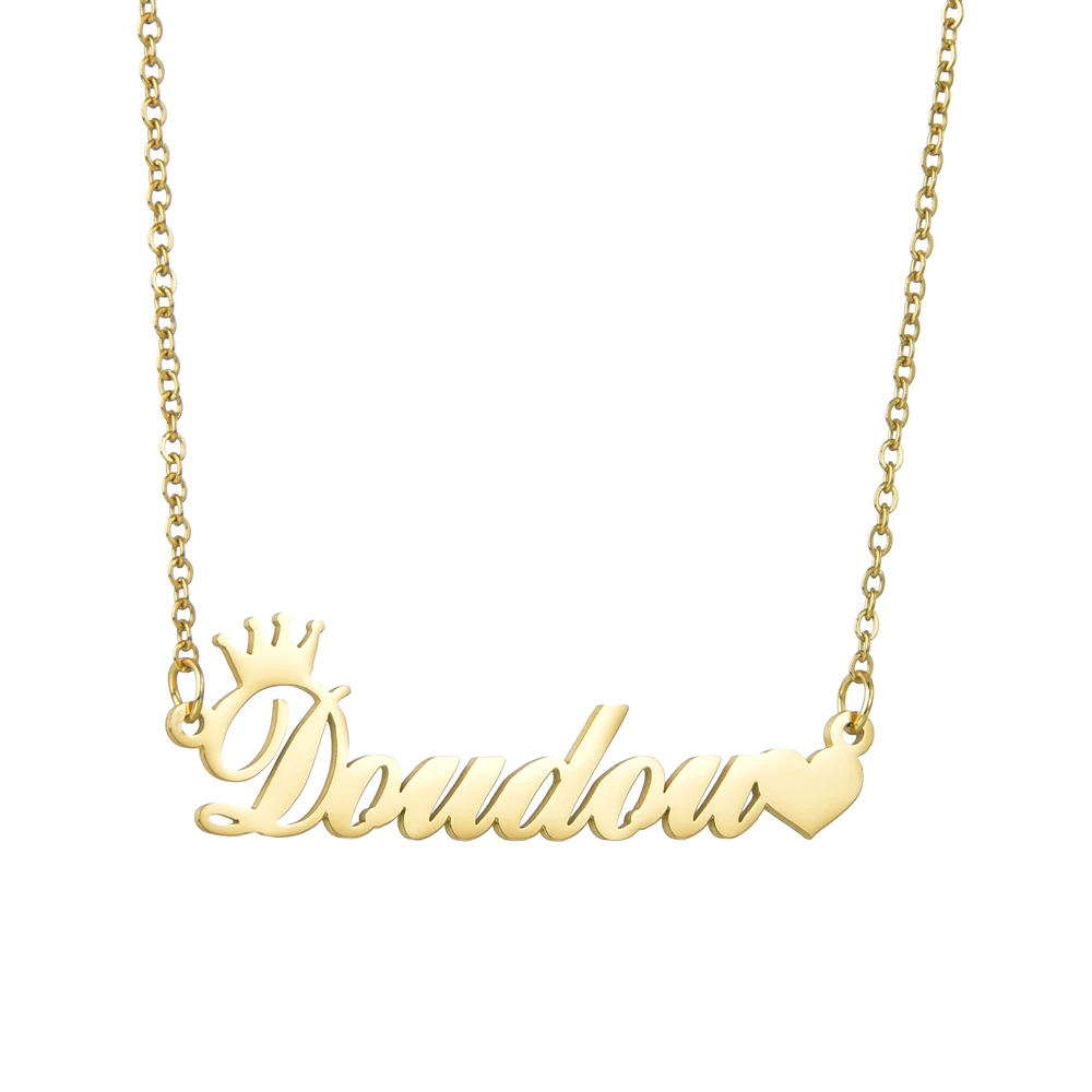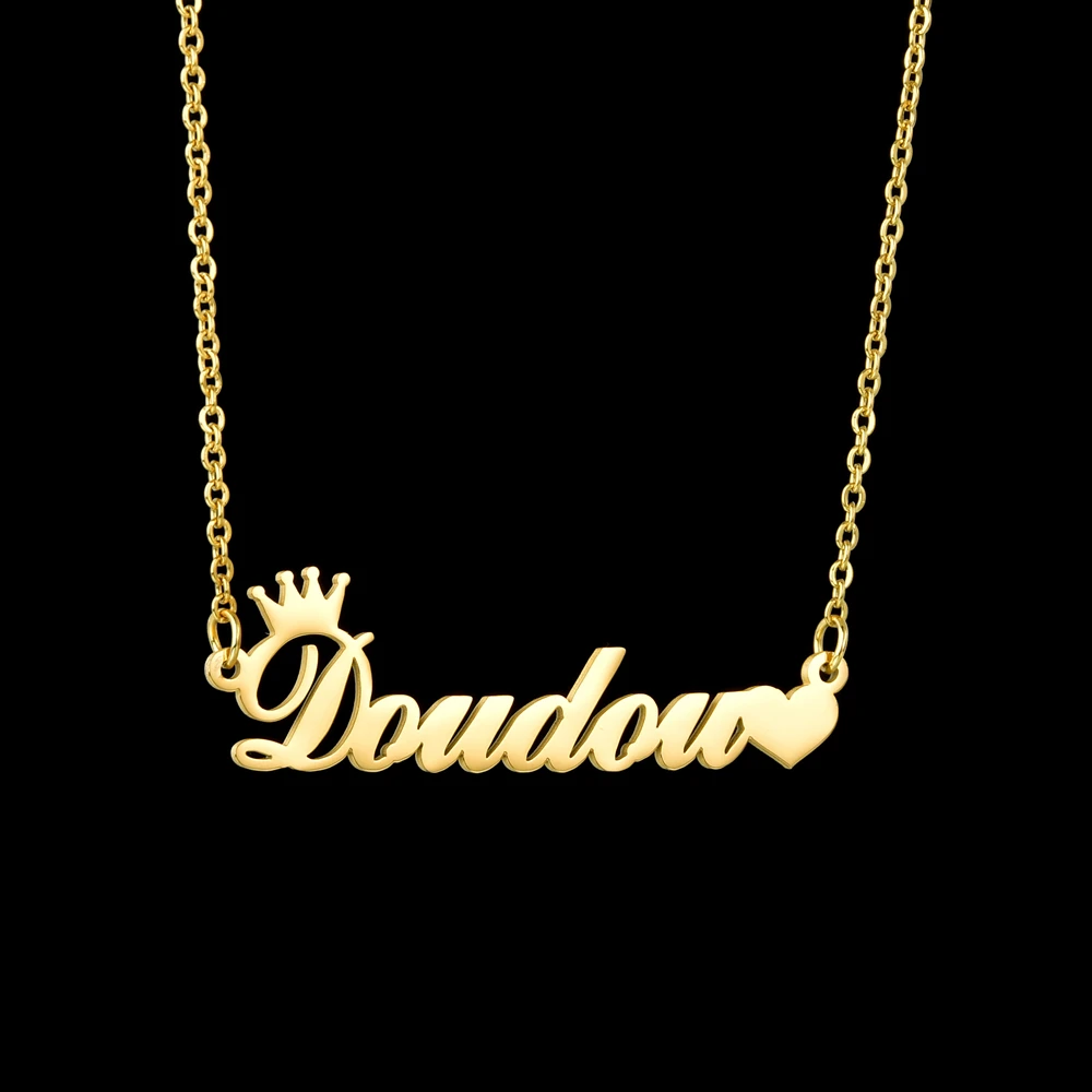 Индивидуальное модное ожерелье Atoztide из нержавеющей стали с именем, персонализированное золотое ожерелье с буквами и короной и сердцем, подвеска с именной табличкой, подарок