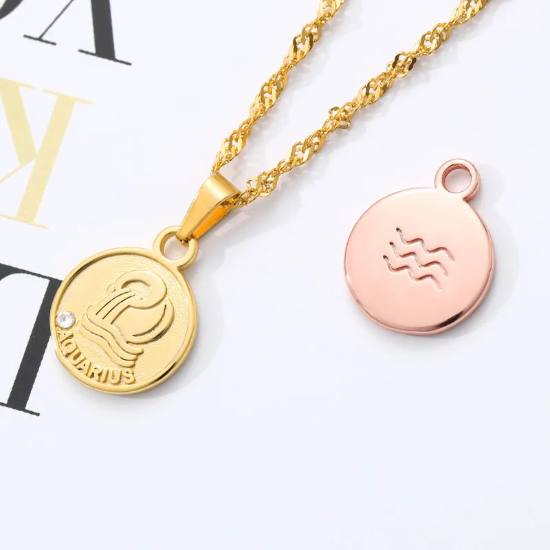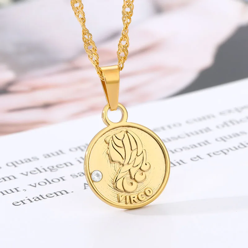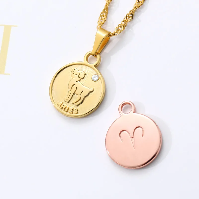 Зодиакальные ожерелья для женщин, ожерелье с монетами, Овен, Лев, колье, знак астрологии, золото, 12 гороскопов, Зодиак, астрологическое ожерелье для женщин
