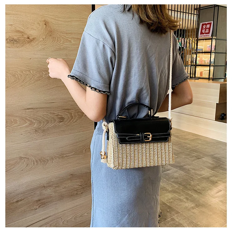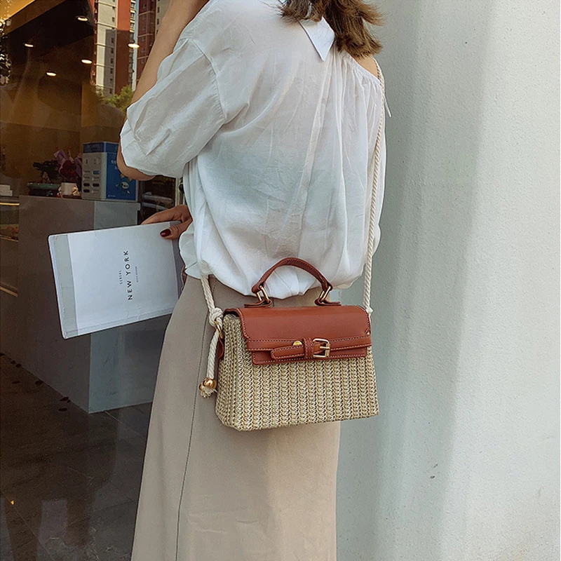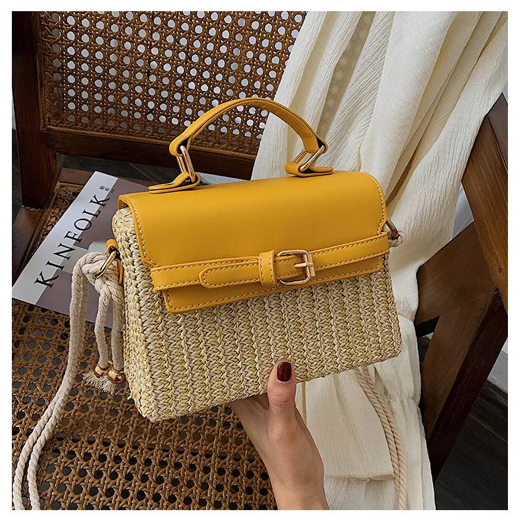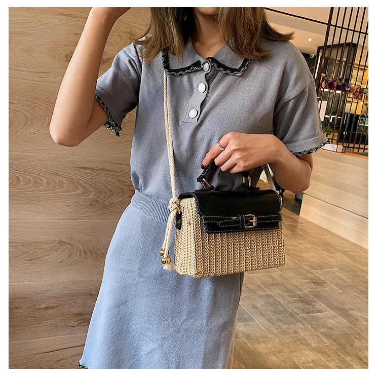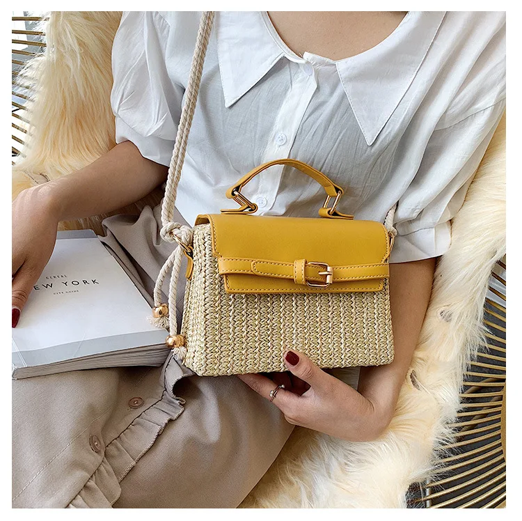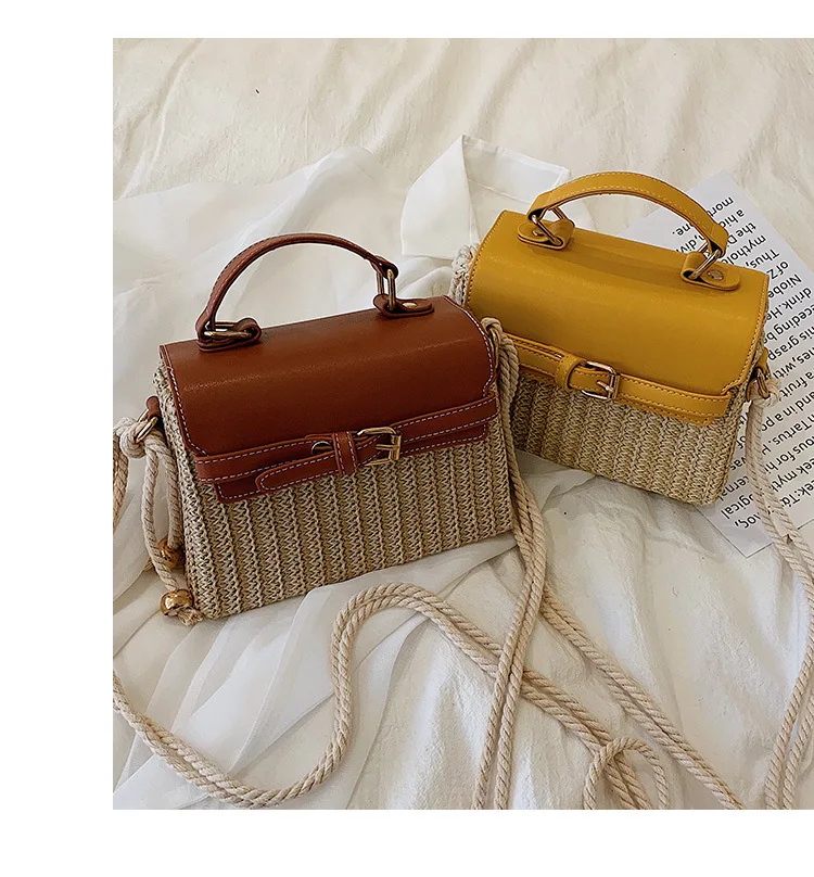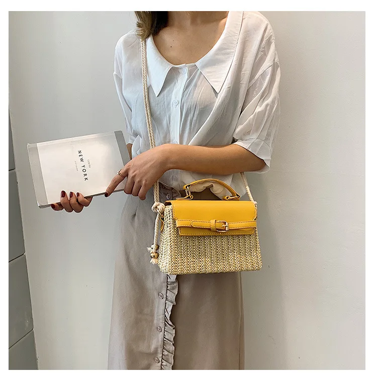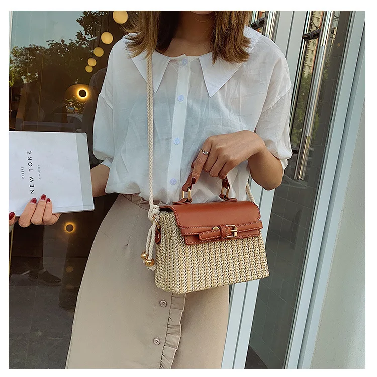 Повседневная коробка, соломенные женские сумки на плечо, дизайнерск...