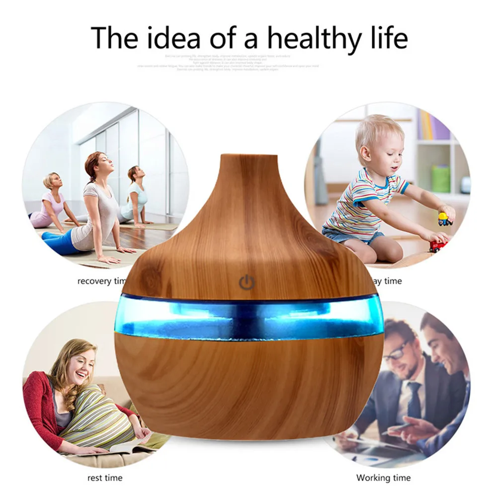 300 мл увлажнитель воздуха Арома-диффузор для эфирных масел, ультразвуковой древесины увлажнитель воздуха USB мини создатель тумана 7 светодиодный светильник автомобиль дома