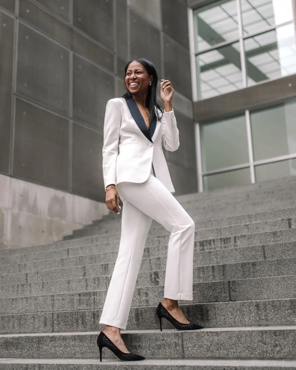 Белый костюм с отложным воротником и штанами для женщин, большие размеры, на заказ, женский брючный костюм, блейзер + штаны для работы, брючный костюм для свадебной вечеринки