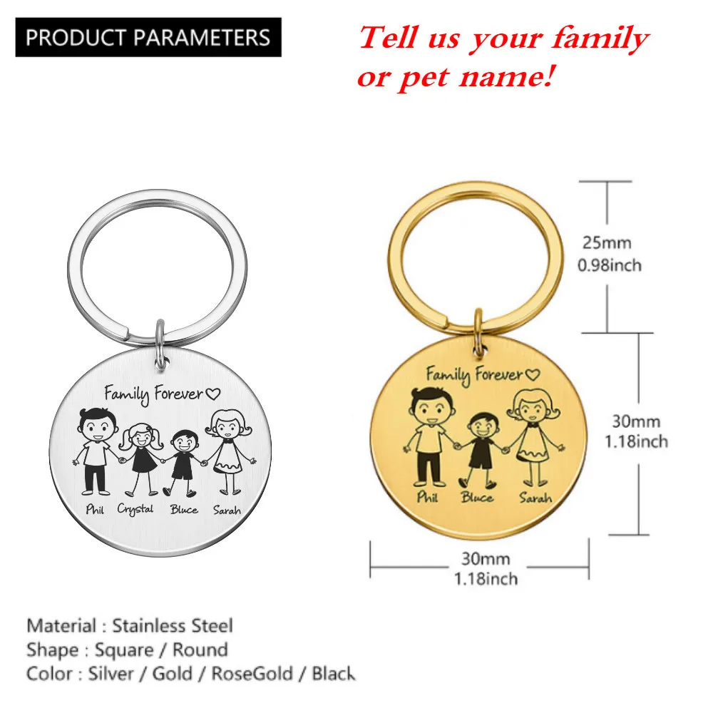 Брелок для ключей с гравировкой из нержавеющей стали, для мамы, папы, дочки, сына