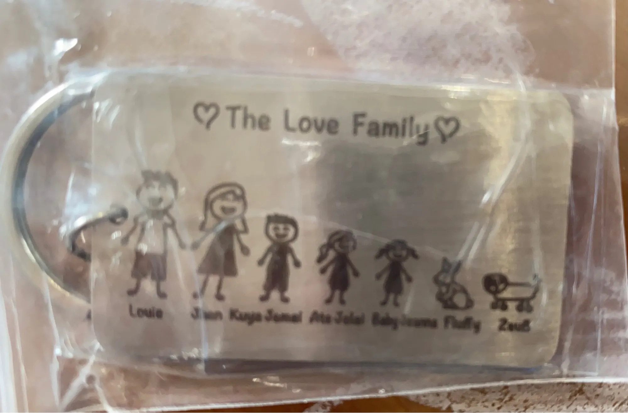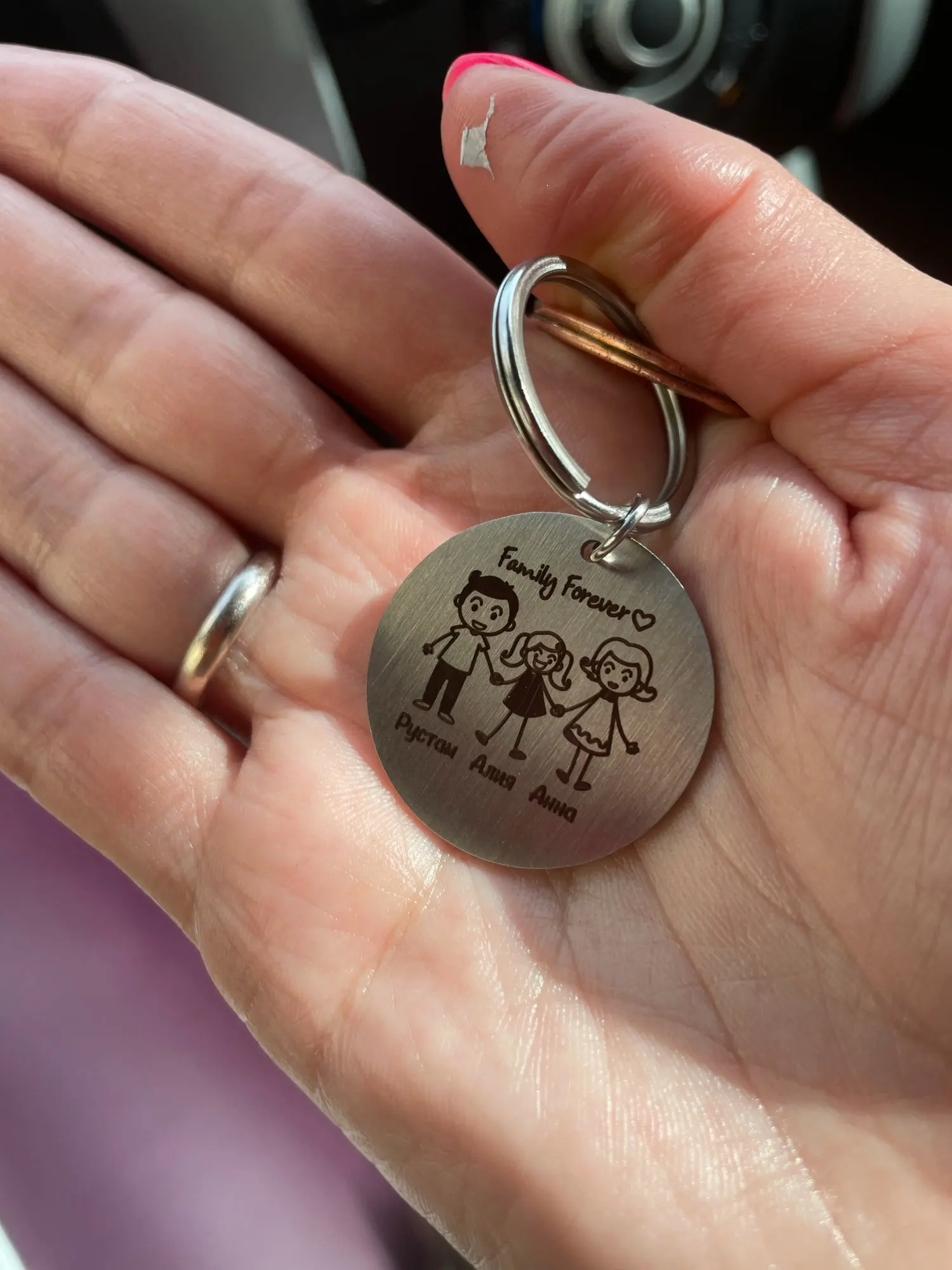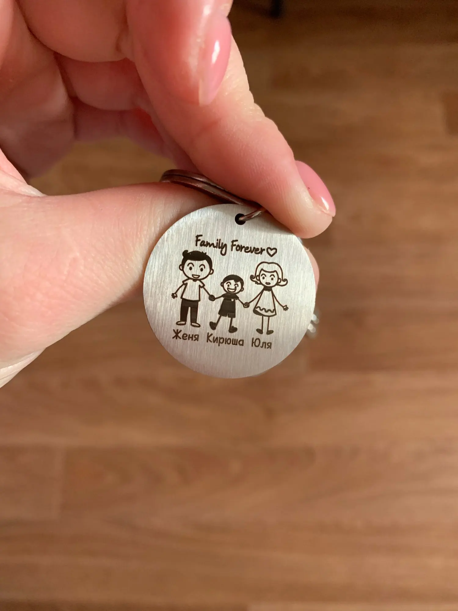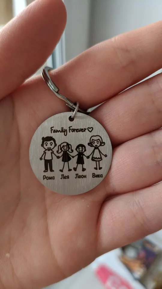красивый брелок, выполнен аккуратно. имена написали на русском языке, без ошибок