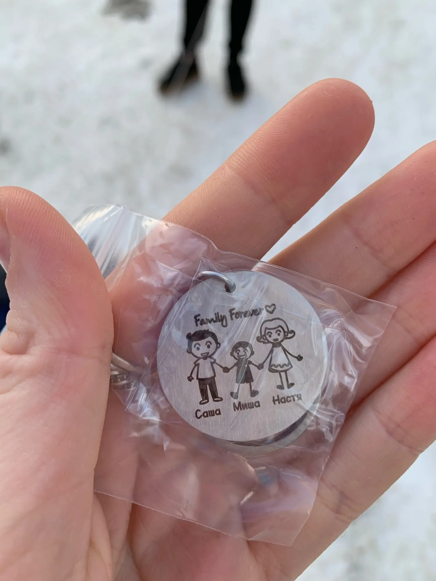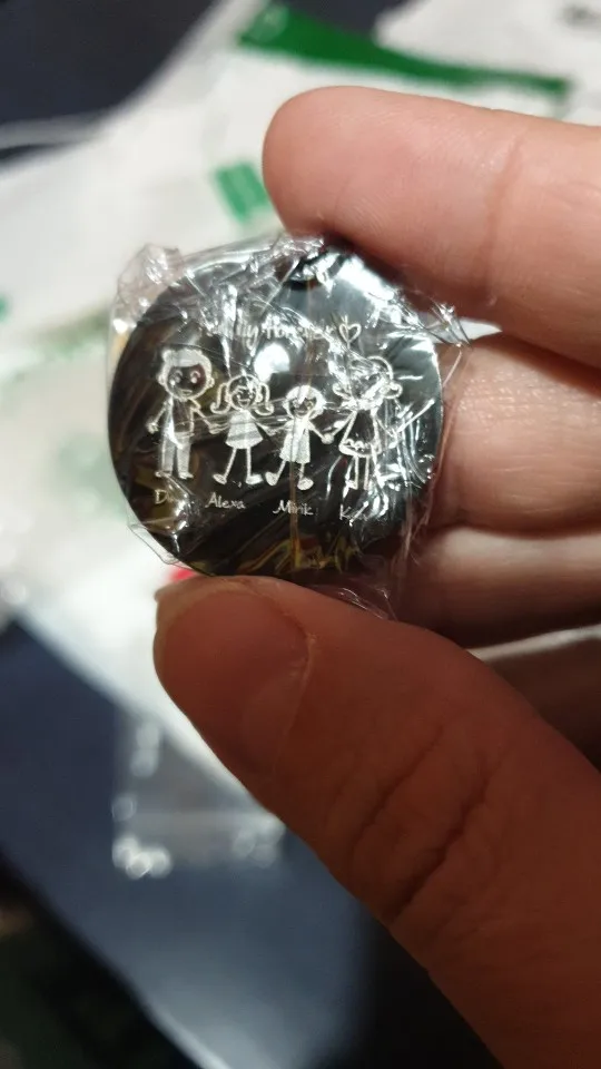 Моему счастью нет предела. Как же я безумно рада, что посылка наконец-то приехала. Заказала я ее в начале октября, в почтовый ящик положили 12 января 2021 в Воронеже. Оооооооочень долгая доставка. Если честно, то думала, что уже не приедет мой долгожданный подарок. Т.к. хотела подарить мужу и ребёнку на н.г. Но оно того стоило. Имена написаны без ошибок. Чисто по фото думала, что будет не много больше по размеру. По размеру чуть больше монеты 5 руб. Толщина с монету. Спасибо продавцу. Уже всем друзьям порекомендовала, такой не обычный подарок.