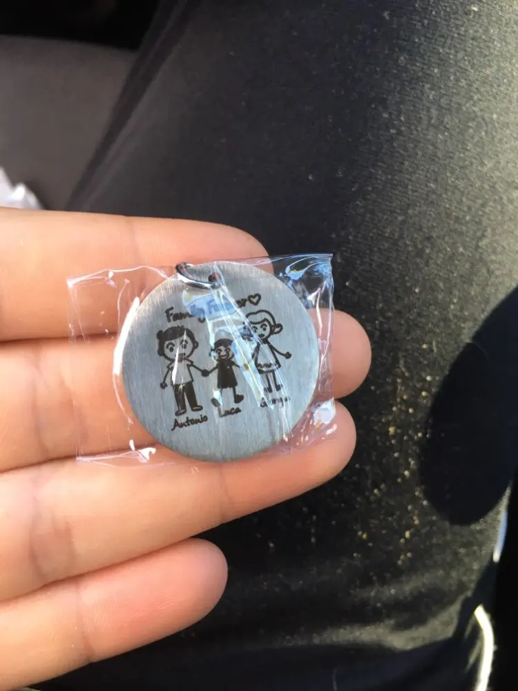 Это так же, как в описании. Для того, чтобы нанести на него удар, названия написаны очень маленьким почерком. Я оставляю вам фотографии, чтобы увидеть размер брелка. У меня не было проблем и мне не нужно было общаться с продавцом.