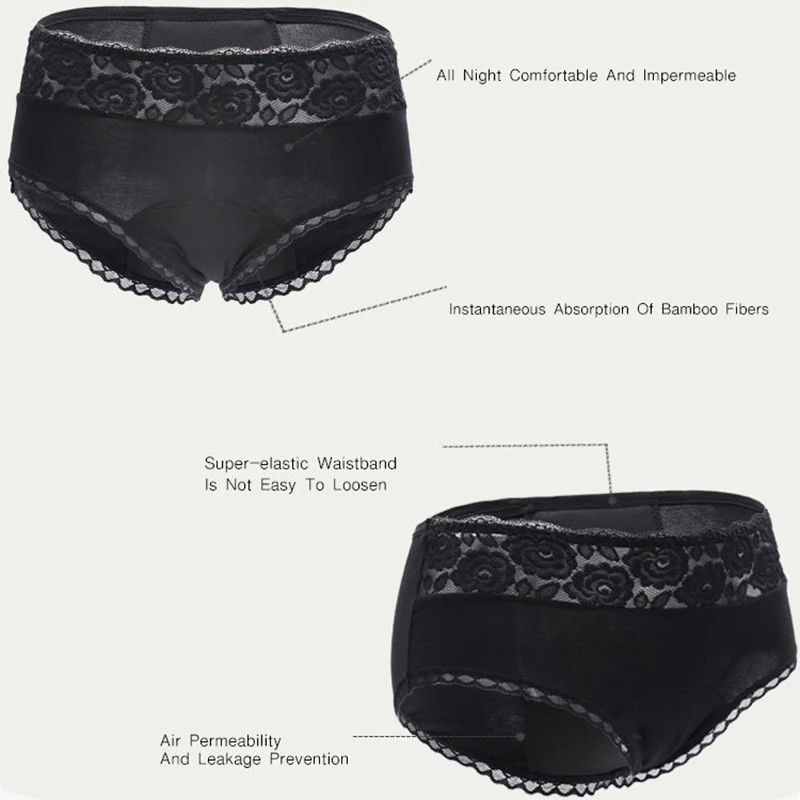 Четыре слоя герметичного черного менструального женского нижнего белья