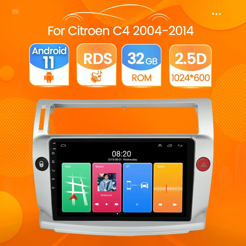 Автомагнитола 2DIN, Android 11, мультимедийный проигрыватель, GPS-навигатор, для Citroen C4 C-Triumph C-Quatre 2004, 2005, 2006, 2007, 2008, 2009