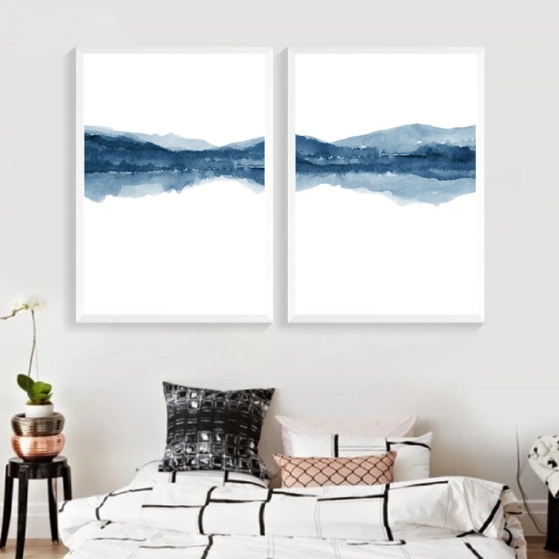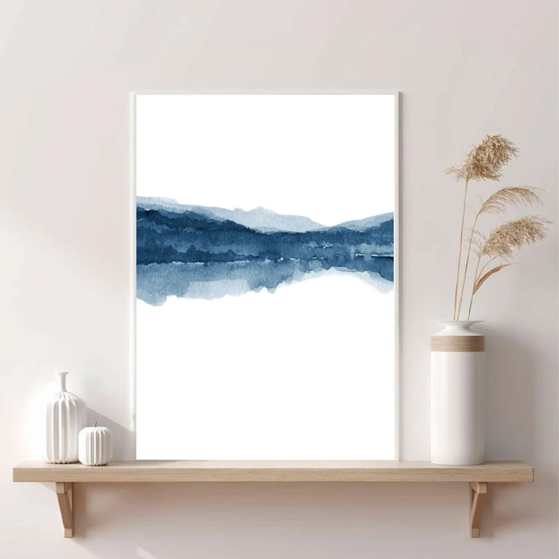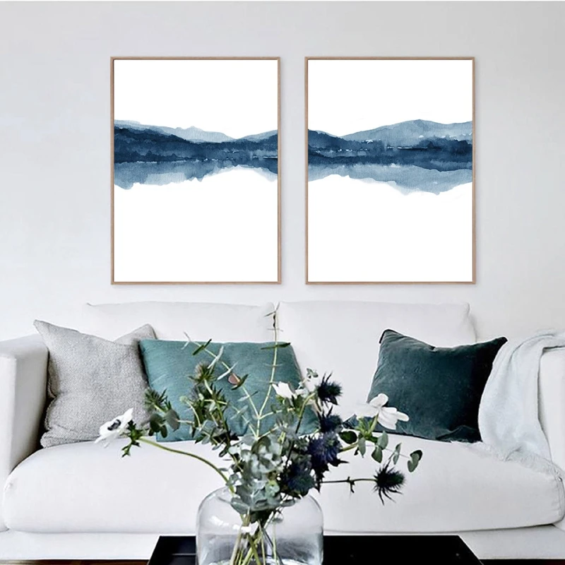 Темно-синяя акварельная картина Принт Индиго абстрактный пейзаж Холст Плакаты и принты настенные картины декор для спальни дома комнаты
