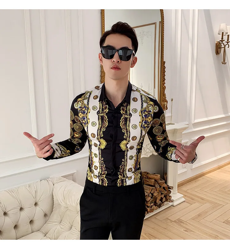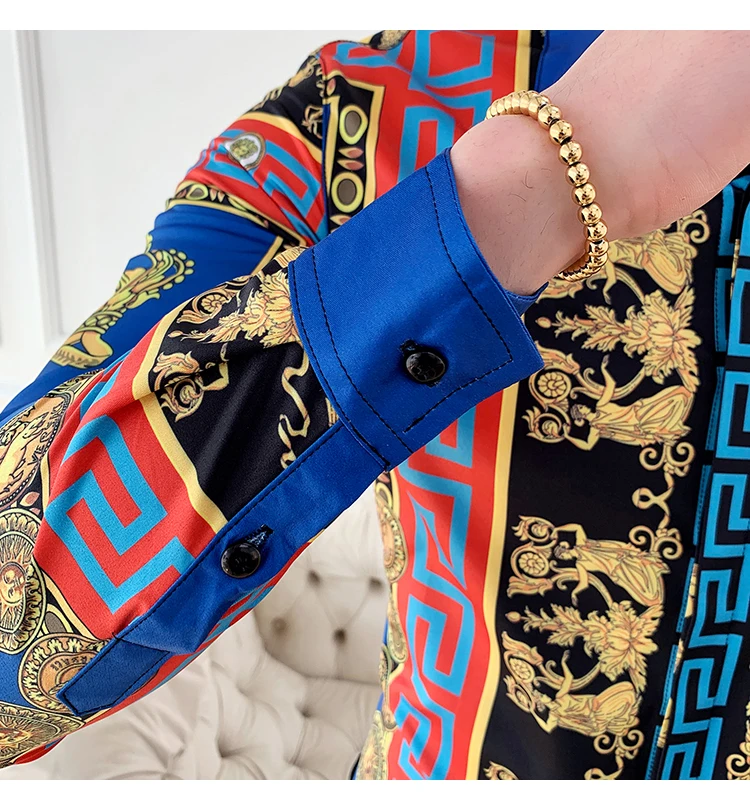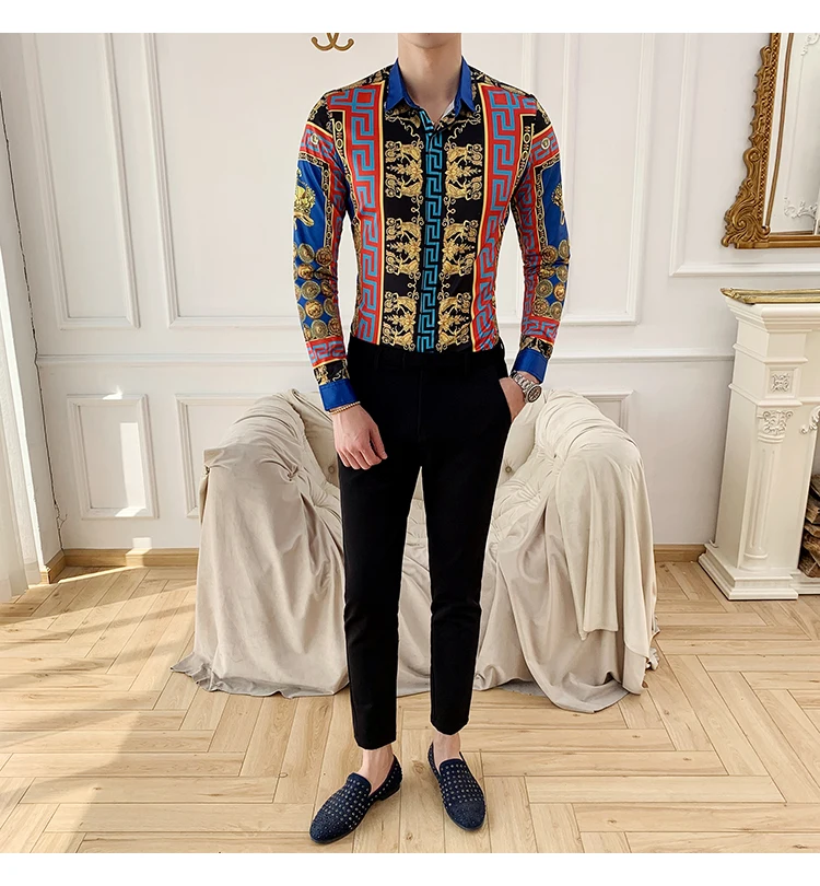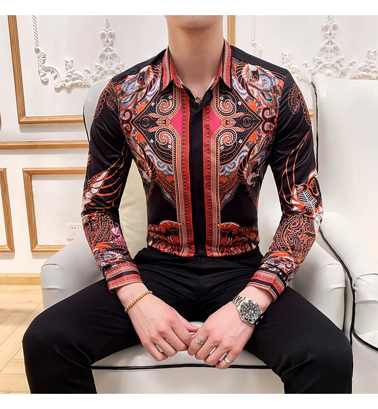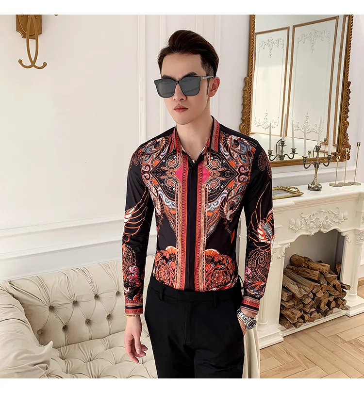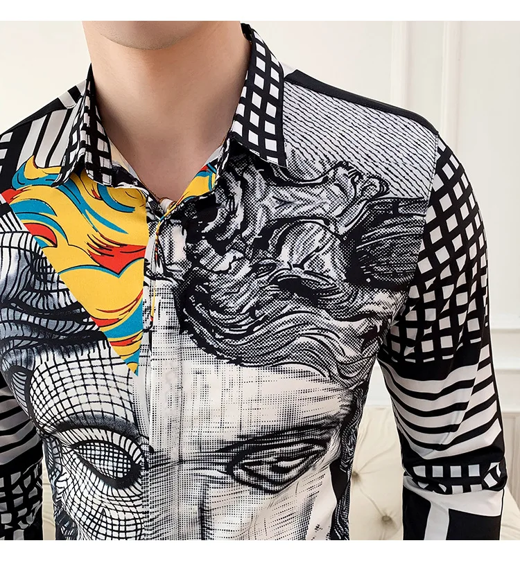 Рубашка мужская оверсайз с принтом, модная блузка с длинными рукава...