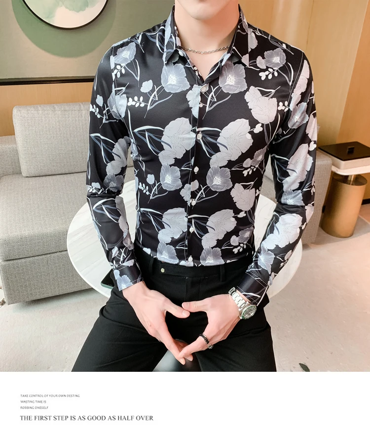 Летняя мужская рубашка с цветочным принтом, новинка 2020, модная му...
