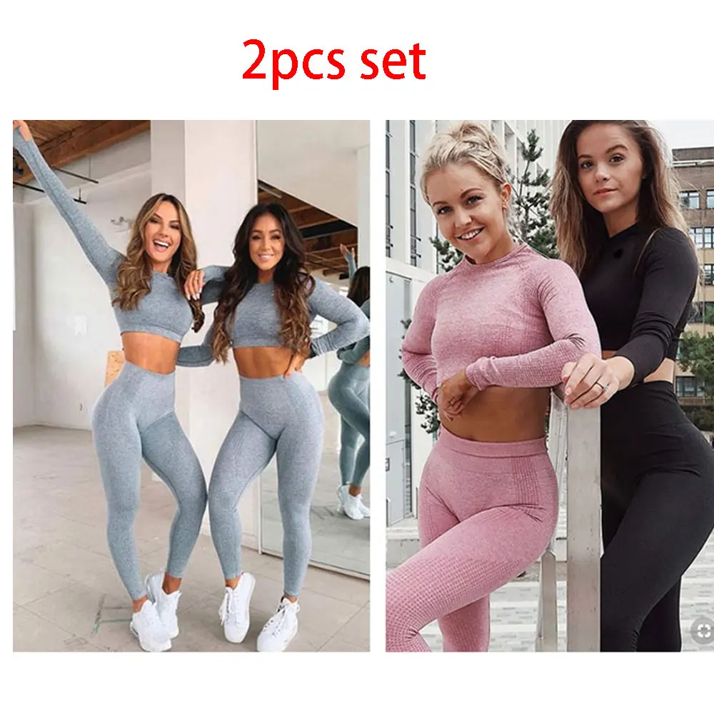 Женский бесшовный костюм для йоги, 2 шт., спортивные рубашки, укороченный топ, бесшовные леггинсы, спортивный комплект, спортивная одежда, спортивный костюм для фитнеса, комплект для тренировок