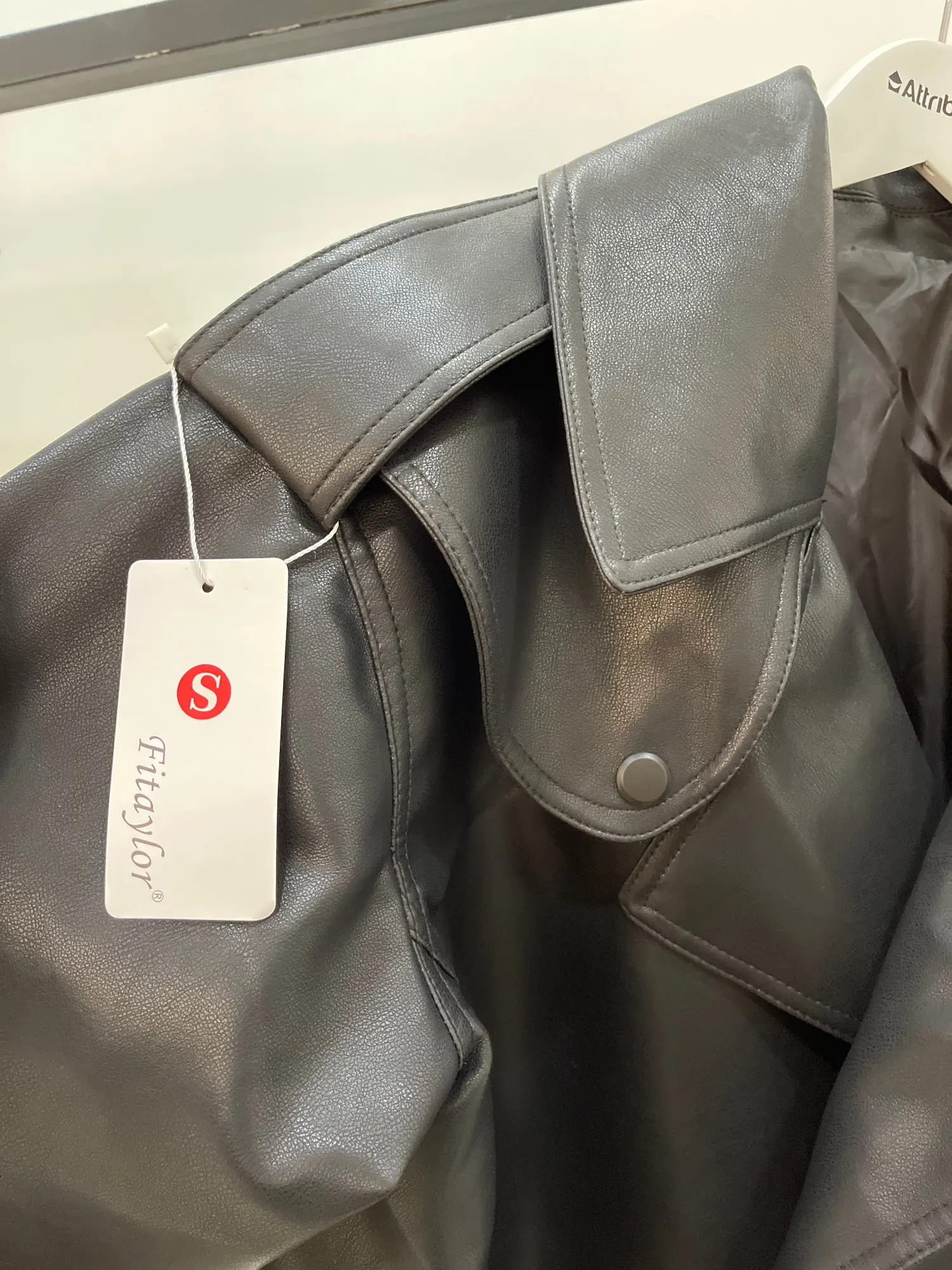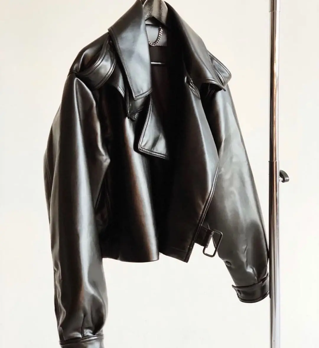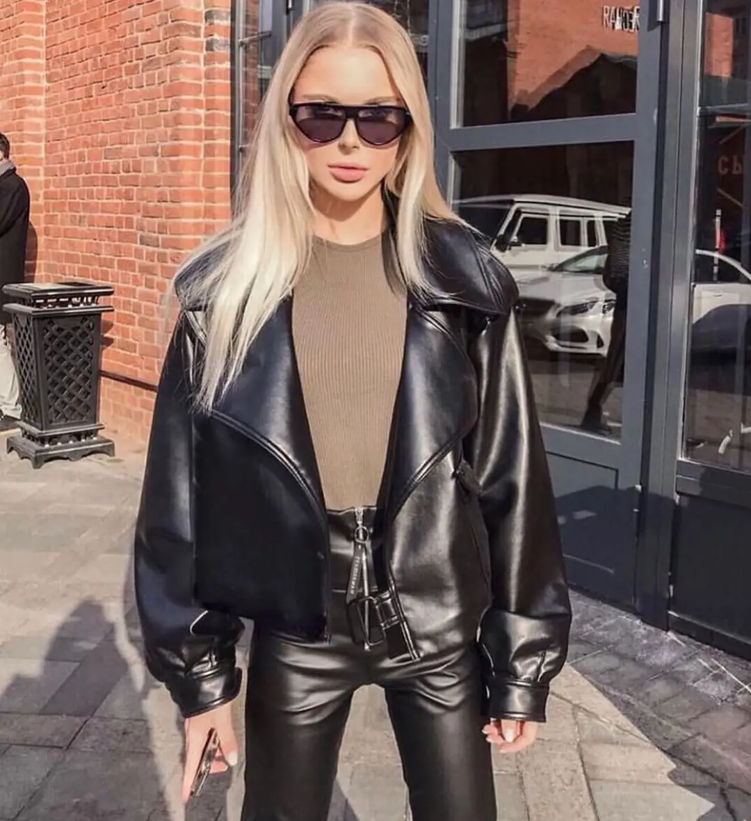 Куртка женская Байкерская из искусственной кожи, осенняя, Черная