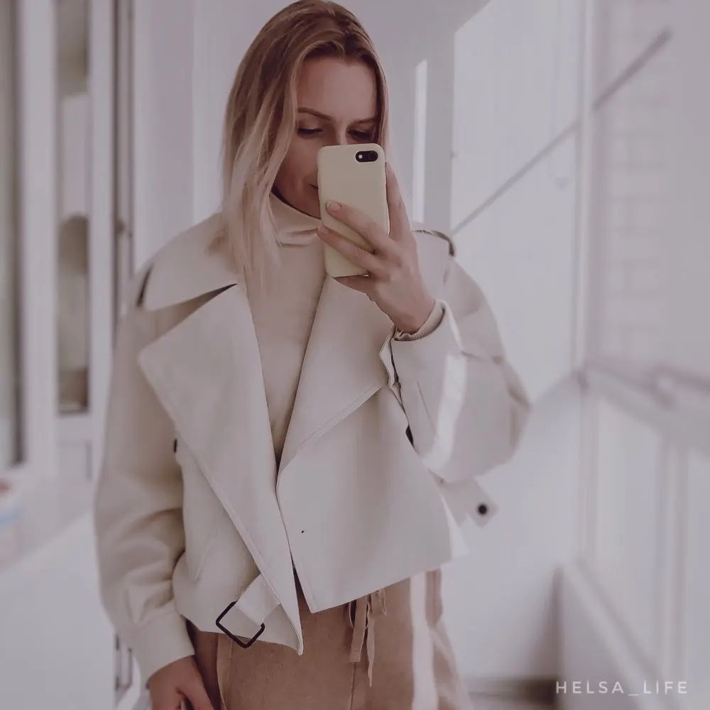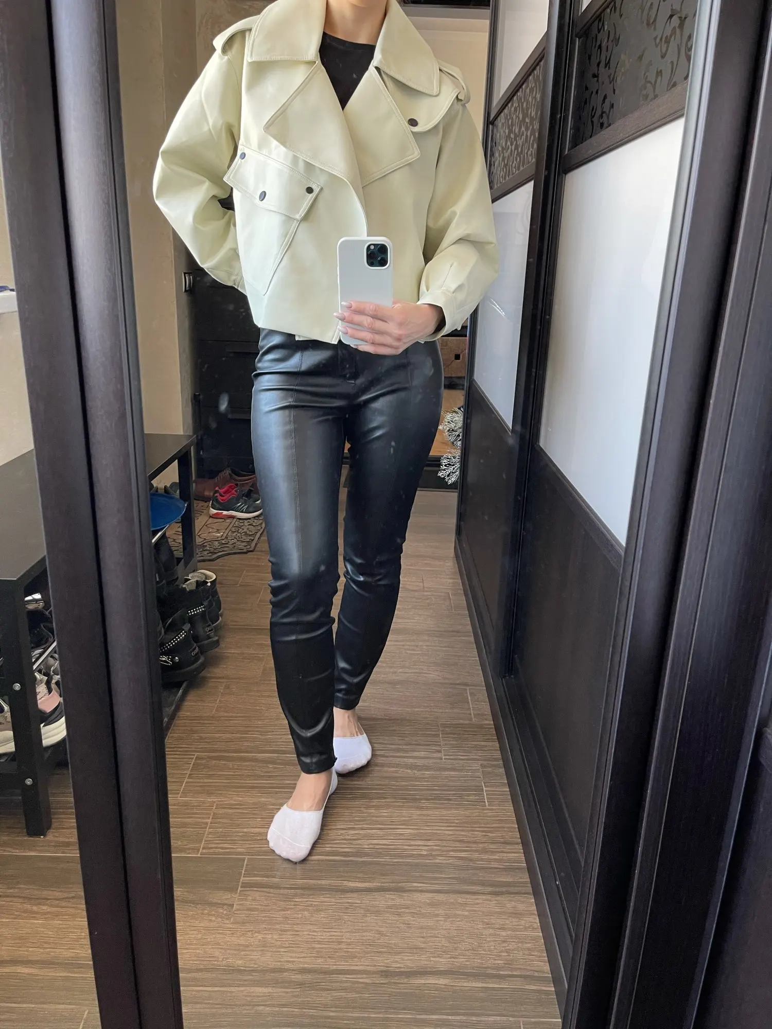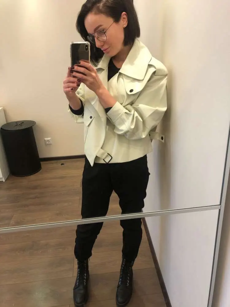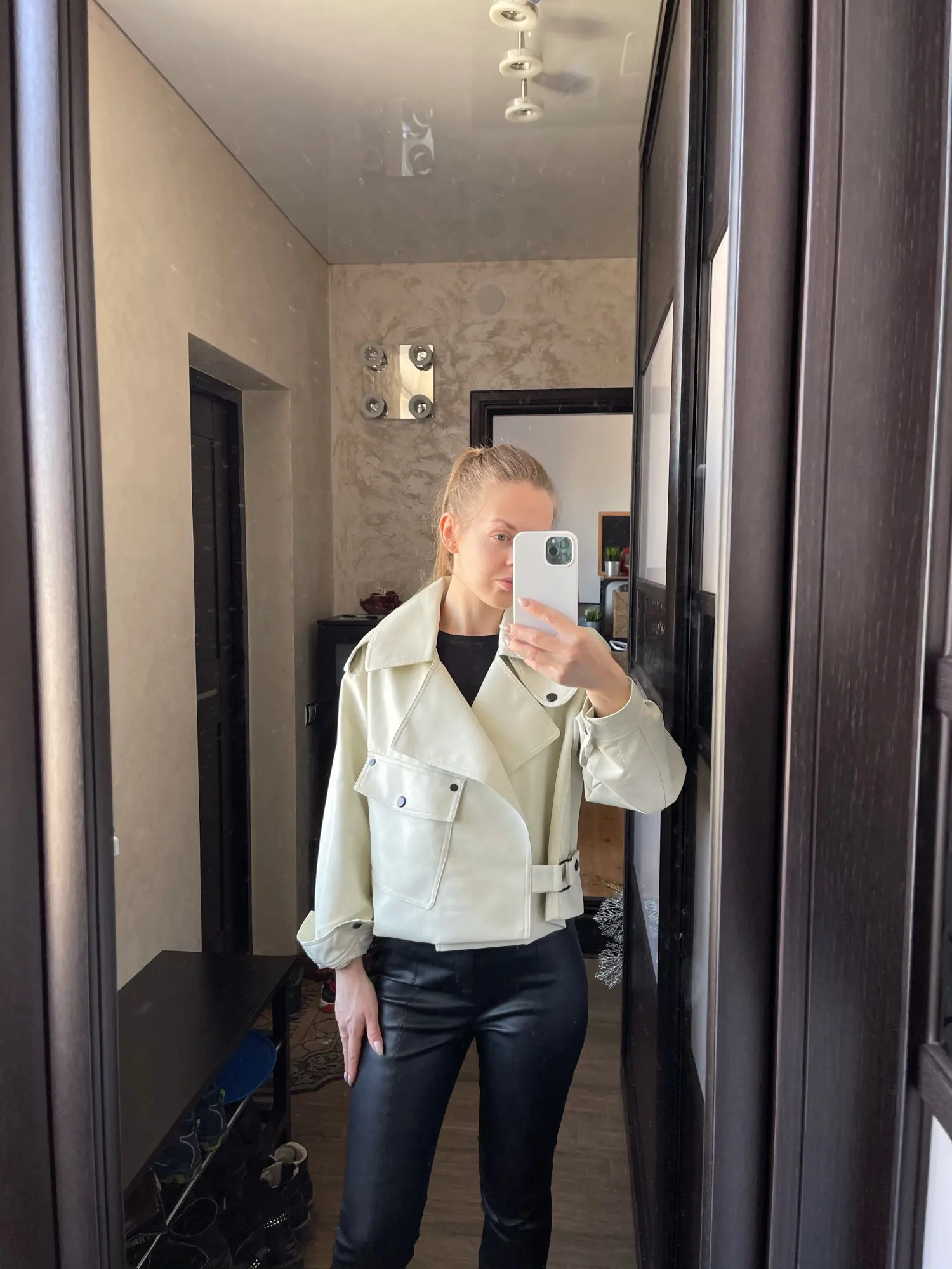 Очень стильная классная куртка, на ощупь приятное. Швы ещё не рассматривала, но в целом впечатление отличное. Взяла размер L. На мой 46 размер самое то.