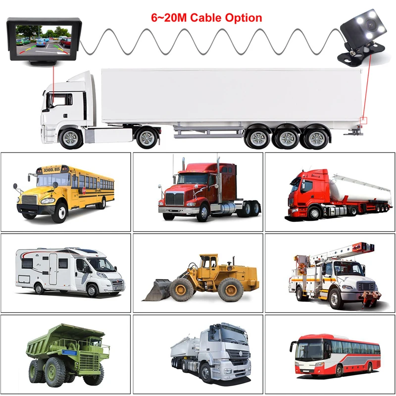 Камера заднего вида GreenYi, HD CCD камера заднего вида для автобусов, грузовиков, 12 В, 24 В постоянного тока, Система помощи при парковке
