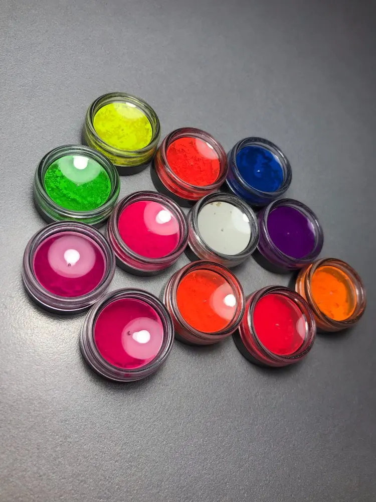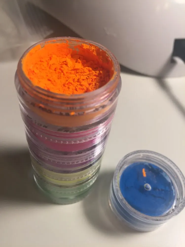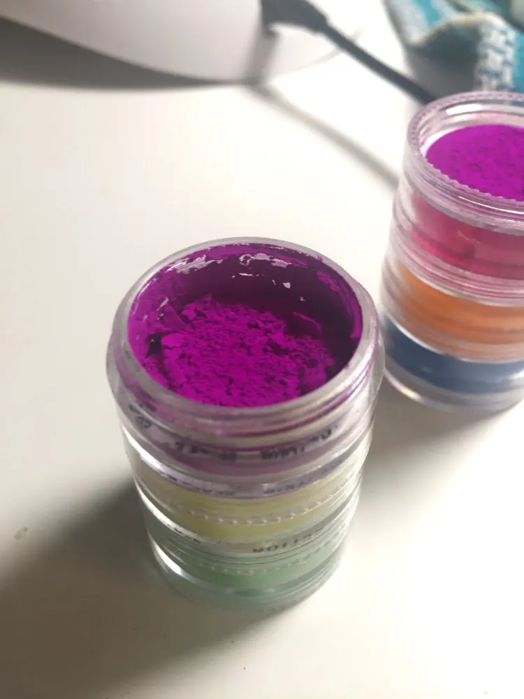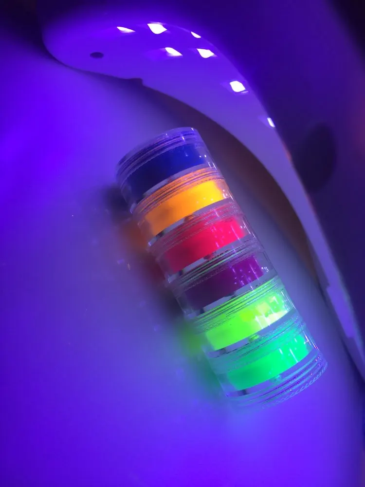 Порошки хорошо соответствуют описанию, чтобы увидеть в лампе, если они действительно работают для флуоресцентных, но на данный момент цвета Топы!