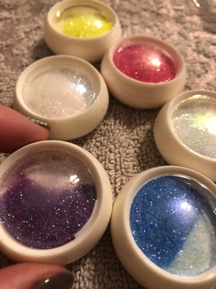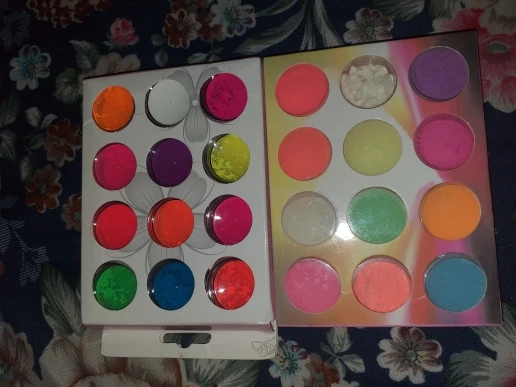 Очень крутые пигменты. Открыла и чуть не ослепла, прям глаза режут, в хорошем смысле. Яркие, хорошо наносятся. Конструкция единая, нельзя открутить все баночки и отдельно хранить. РЕКОМЕНДУЮ (сфотографировано без фильтров, как есть, но свотчи получились на 2 фото немного ярче, а на 1 фото как в реале)