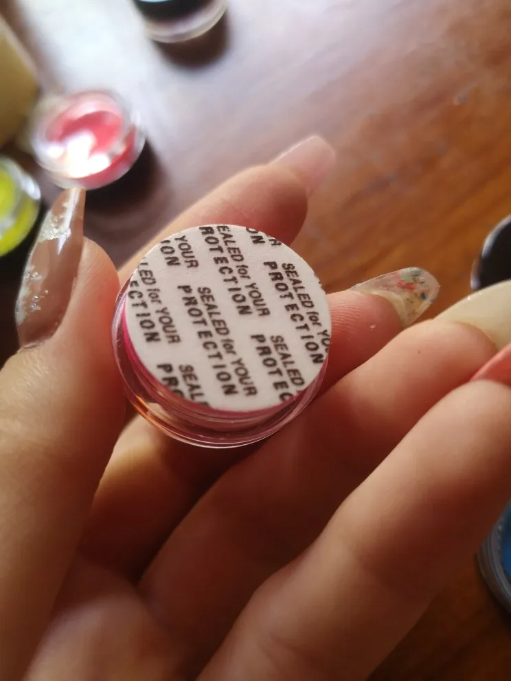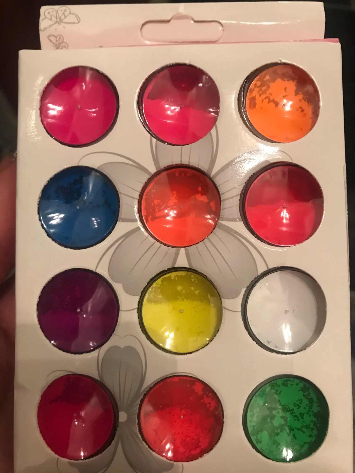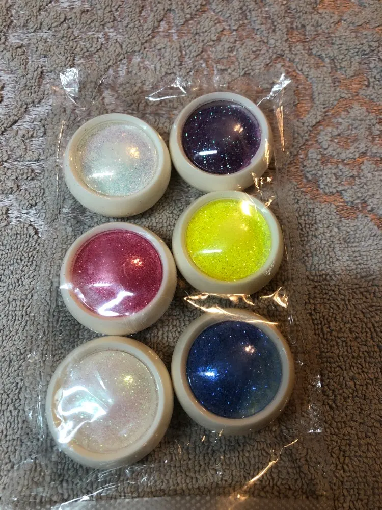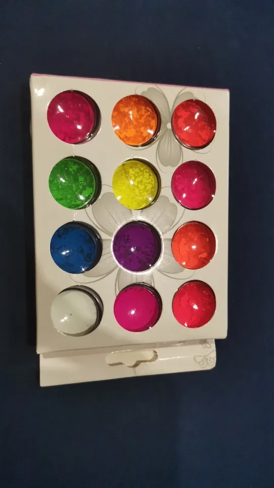 Товар до РБ шёл очень долго. Посылка не отслеживалась.Думала, что не дождусь)) Упакован был в обычный пакет с воздушным наполнением. Товар соответствует описанию. Цвета неоновые, яркие. 12 в комплекте.Каждая баночка имеет защитную мембрану. В работе непробовала, позже добавлю отзыв. Продавца и магазин рекомендую.