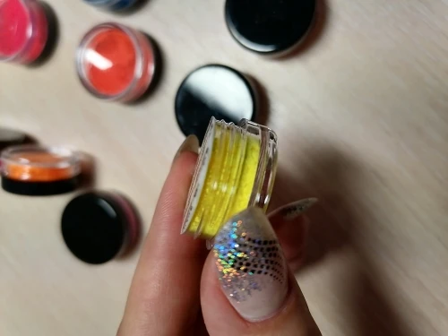 Очень крутой пигмент! Я с помощью него и градиент делала, и реверсивный стемпинг. Шло, правда, долго. Ещё и потеряла заказ. Писала продавцу, открывала спор. Меня заверили, что все скоро получу. И правда, получила. Это главное )) В почтовый ящик засунули. А шло, наверно, 2,5 месяца. 2-2,5. Наборчики были в коробках. Просто я сразу выбросила. У светлого набора одна баночка была неплотно закрыла, и оранжевая пудра все обсыпала. Но немного совсем. Не страшно. Продавцу огромное спасибо!