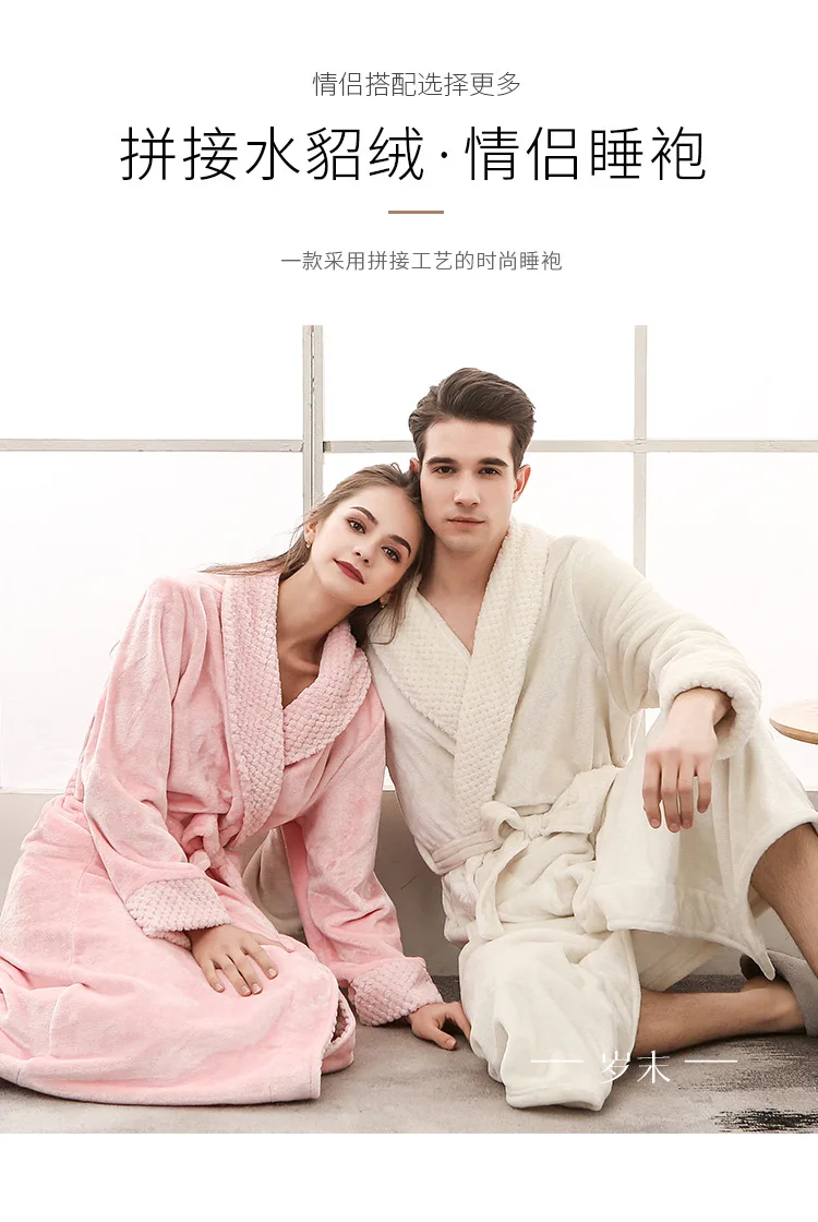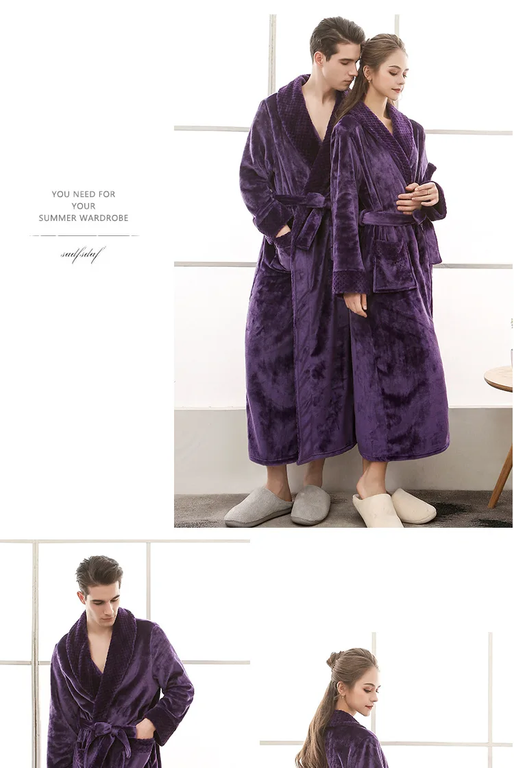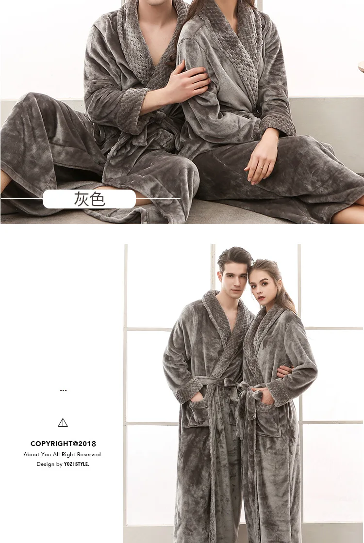 Парные мужские фланелевые халаты, зимнее утепленное кимоно, ночные ...