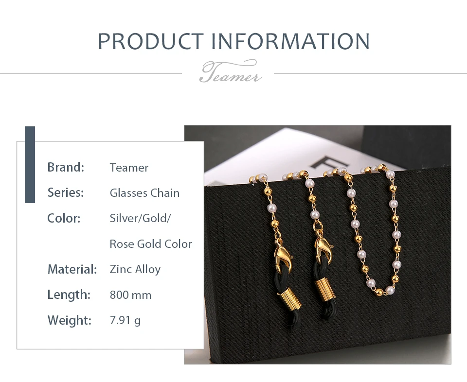 Цепочка для очков Женская, с жемчужными бусинами