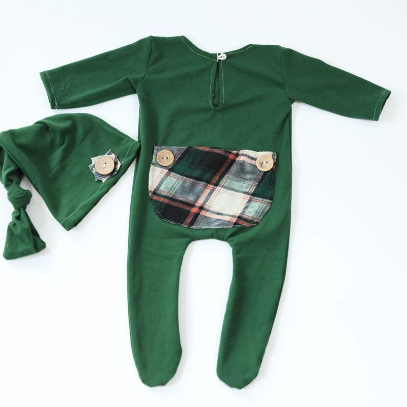 Реквизит для фотосессии новорожденных; Кружевная Одежда для девочек; Мягкий эластичный комбинезон в клетку + шляпа