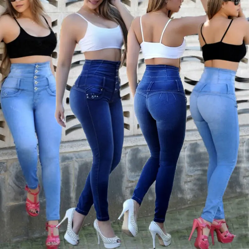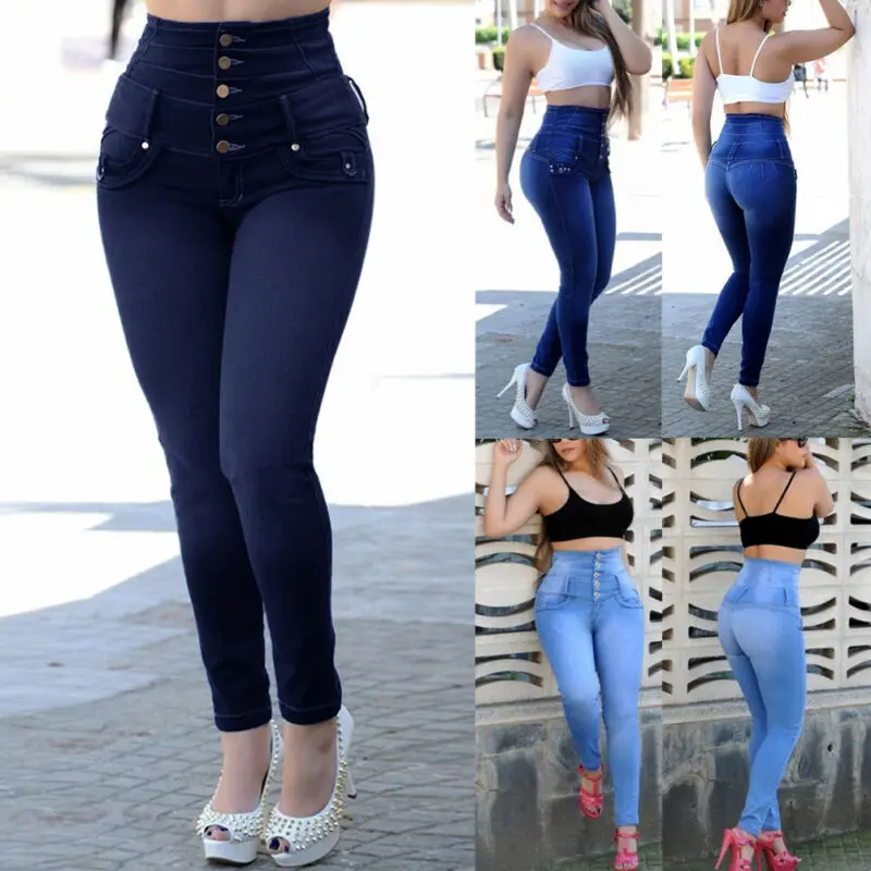 Новинка 2020, популярные женские узкие джинсы, обтягивающие брюки с высокой талией и пуговицами, эластичные узкие облегающие брюки, джинсы Cala