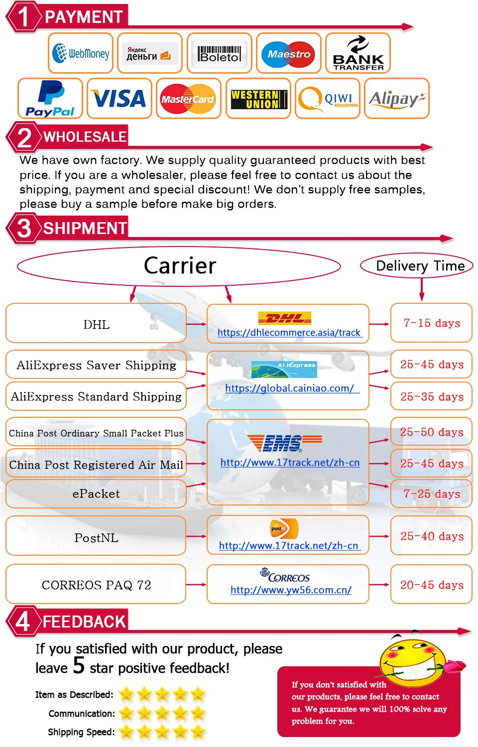 Примечание: Если у вас есть какие-либо проблемы, пожалуйста, не стесняйтесь связаться с нами, мы решим это хорошо для вас, пожалуйста, не открывайте спор случайно, В противном случае вы будете записаны как плохой кредит от нас, Aliexpress, а также Лиги продавцов Китая, и будут заблокированы