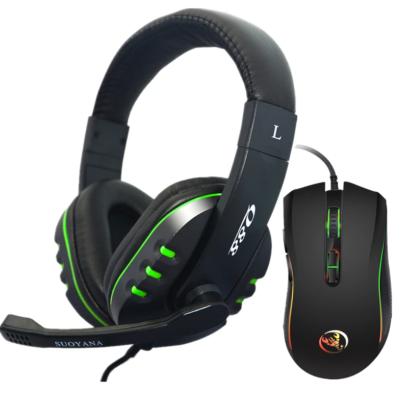 GIAUSA Высококачественная гарнитура + геймерская мышь 3200 DPI стерео Бас Игровые наушники с микрофоном для компьютера ПК ноутбука