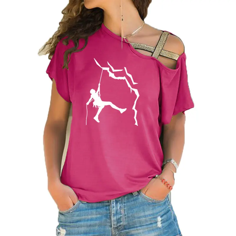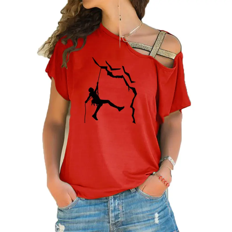 Новинка, летняя брендовая одежда, забавная футболка для восхождения, женская футболка с коротким рукавом для девочек, необычная бандажная футболка с косым перекрестным швом, топы