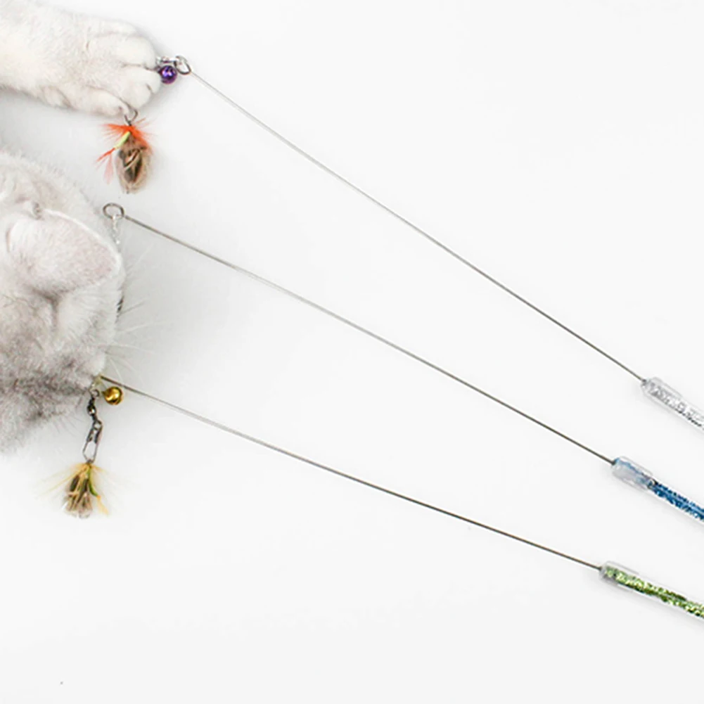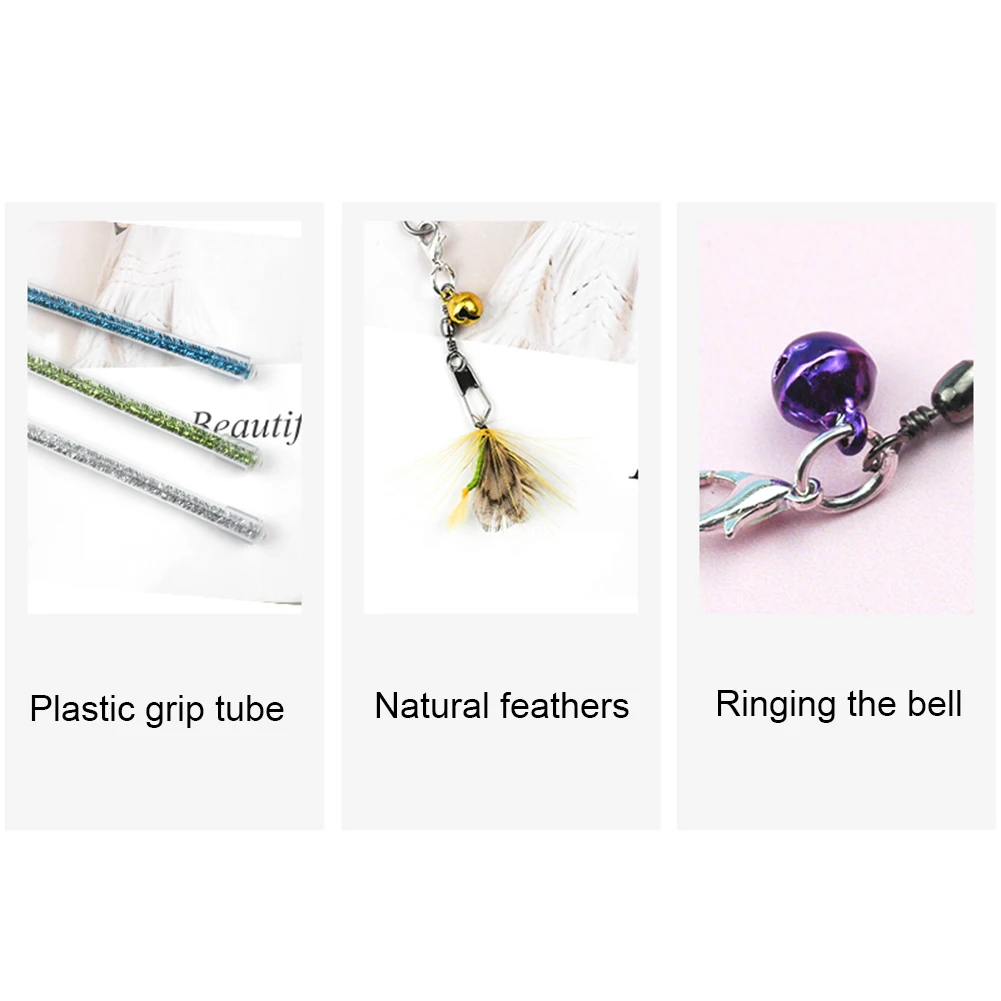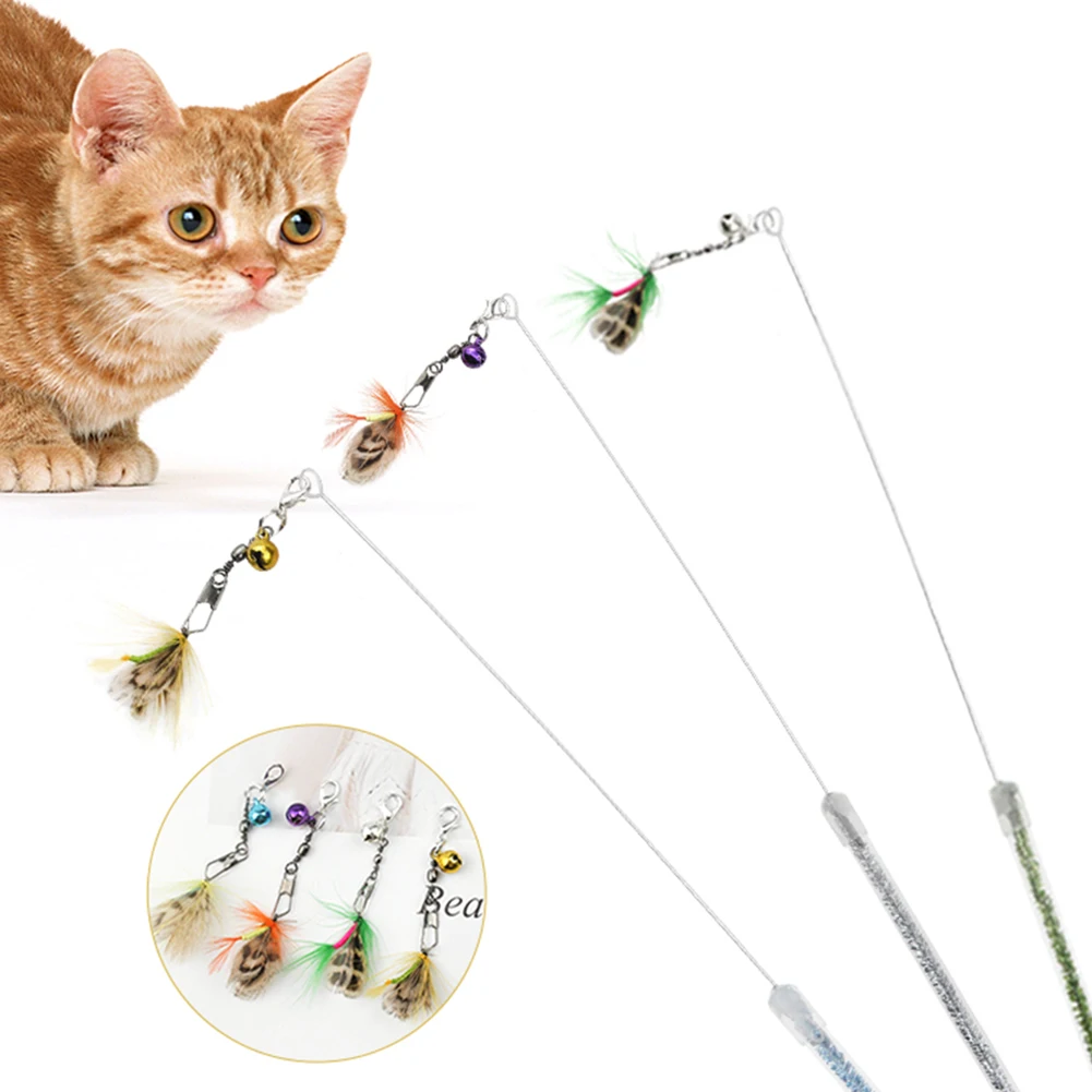 Новинка, 3 шт., колокольчик с перьями для домашних животных, Дразнилка для кошек, Интерактивная палочка, палочка, игрушка для игр, товары для домашних животных