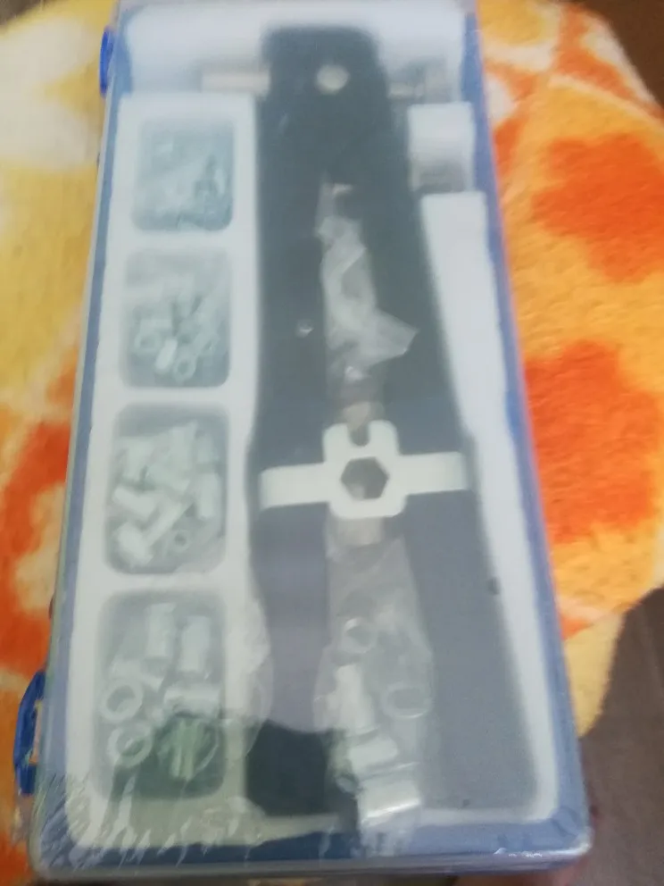 Заклёпочник выглядит прилично, насадки просто в пекетиках, всё дошло целое! Доставка считаю была относительно быстрой до Екб. Продавца и магазин рекомендую!!!