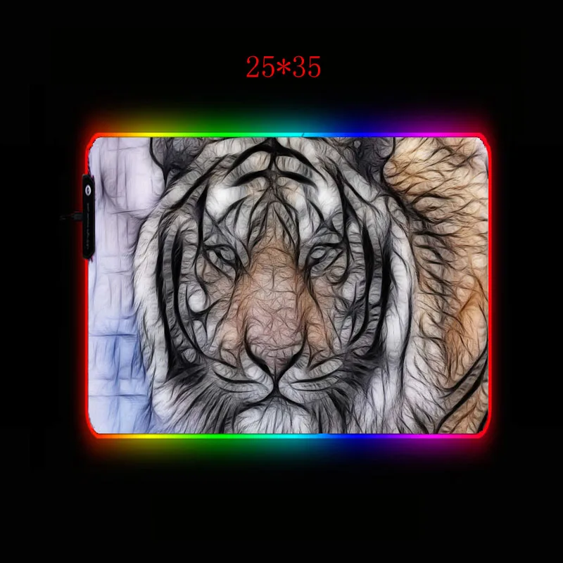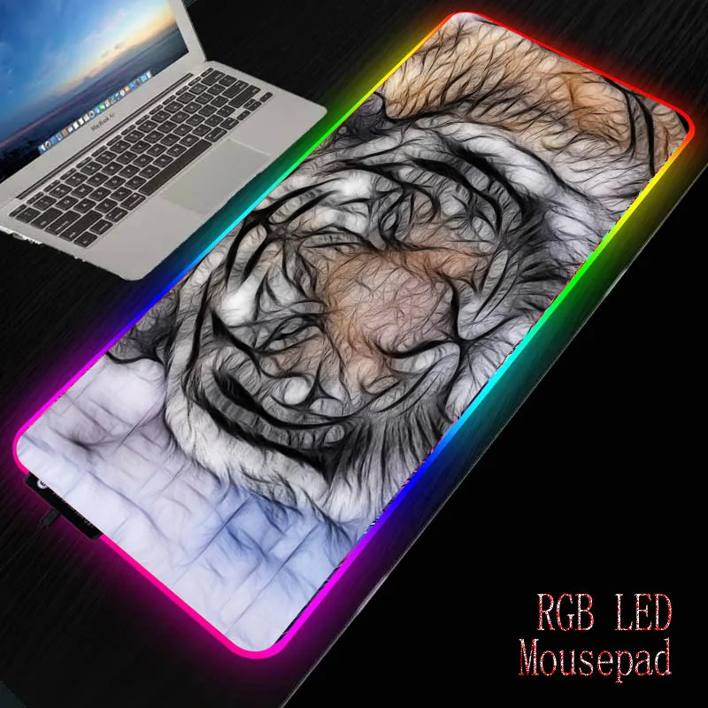 Большой игровой коврик для мыши MRGBEST с изображением животных, тигра, RGB, компьютерные коврики для мыши со светодиодной подсветкой XXL, XL, L, M, Настольный коврик для клавиатуры