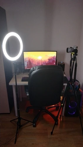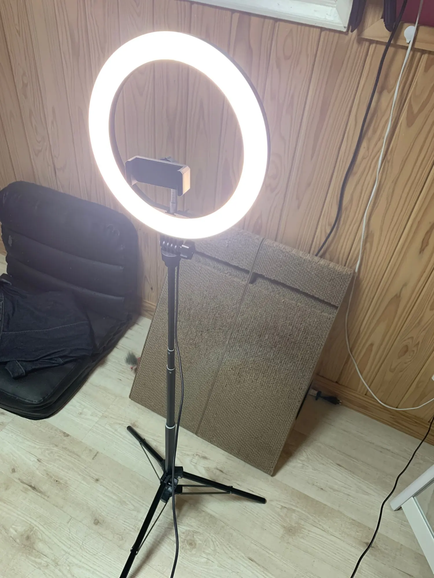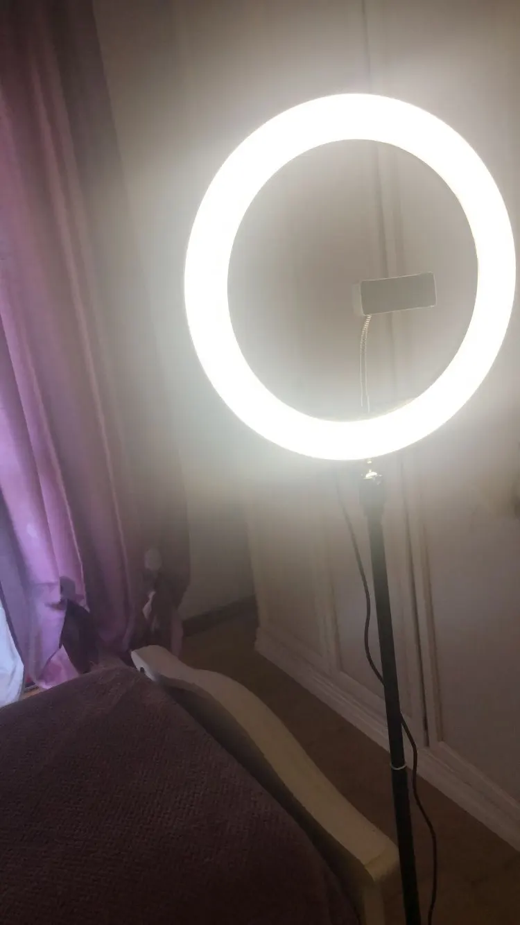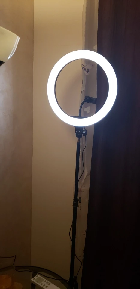 Хорошая яркая лампа с возможностью регулировки яркости и высоты благодаря штативу. в целом доволен, может питаться от powerbank'а и блока питания. Очень удобно делать фото и краситься