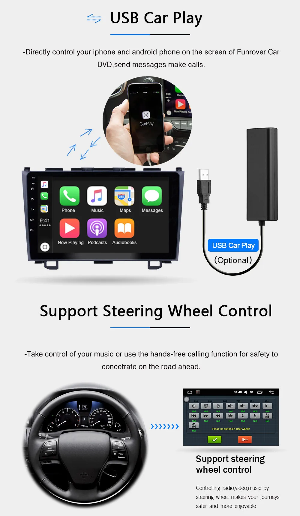 Изюминка продукта:●Это устройство предназначено для CRV 2006 2007 2008 2009 2010 2011.Если ваша приборная панель выглядит так же, как на фотографии, то должен подойти GPS-модуль. Если вы не уверены, пожалуйста, пришлите мне хорошо освещенную фотографию вашей приборной панели для подтверждения.●Наш CR-V GPS-Блок подключи и работай и поддерживает вход RCA для задней камеры.●Новейшая ОС Android 9,1, четырехъядерный процессор, 16 ГБ/32 ГБ ROM,1 ГБ/2 ГБ RAM (более высокая скорость),●HD 9 ''Авторадио mp5 плеер●Есть микрофон на лицевой стороне устройства,●Модернизированная система зеркального соединения: IOS/Android mirror linkIOS one-way:IOS поддерживает мобильный телефон одностороннюю проекцию на машинуДвусторонняя версия Android: Android поддерживает двустороннее соединение мобильный телефон●Поддержка Google Play Store, A2DP , AM , FM.● Встроенная GPS-навигация: пользователи могут приобрести напрямую в play store для автономной навигации. Благодаря подключению к Wi-Fi Google Maps можно использовать идеально, вы можете отправиться куда угодно и больше никогда не затеряться.● Встроенный WIFI: Подключитесь к WIFI, и вы найдете новый мир, самый удобный-онлайн-карта.●Камера заднего вида: необходимо выбрать камеру, автомобиль подключается к реверсивной передаче для автоматического переключения (требуется дополнительно)● Управление рулевым колесом: через него вы можете управлять необходимыми вам функциями рулевым колесом, более удобно● Встроенный Bluetooth с A2DP/Hands Free/Телефонная книга: звонки громкой связи Bluetooth, музыкальный плеер Bluetooth, автоматическая загрузка телефонных книг●Записывающее устройство: вы можете выбрать записывающее устройство, и автомобиль имеет воспроизведение, доказательства могут быть сохранены●Двойной вход USB-адаптера● Поддержка файлового менеджера: поддержка загрузки, установки и удаления более тысяч приложений android● Поддержка нескольких языков: поддержка языков, до 40 национальных языков●Вы можете наслаждаться музыкой с вашего мобильного телефона без каких-либо кабелей, а также поддерживать USB-соединение.●FM-радио: онлайн-музыка вы можете передавать музыку на автомагнитолу с помощью FM, чтобы наслаждаться оригинальным стереозвуком, с 18 предустановленными станциями● Настройка времени: вы можете использовать сеть или GPS, чтобы автоматически открыть дату и время, или вы можете настроить его вручную.Посылка входит:-1 автомобильный GPS-радиоприемник-1 Кабель GPS-2 USB-кабеля-1 кабель питания-1 кабель RCA-1 входной кабель для камеры
