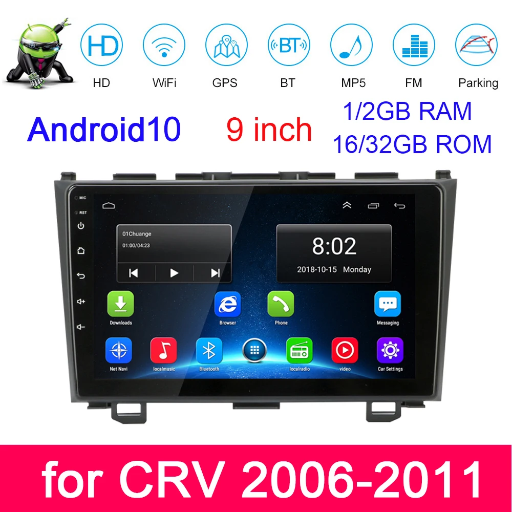 Автомагнитола 9 дюймов для CRV 10,1, 2006, 2007, 2008, 2009, 2010, мультимедийный плеер, Android 2011, стерео, GPS навигация, FM, Mirror Link