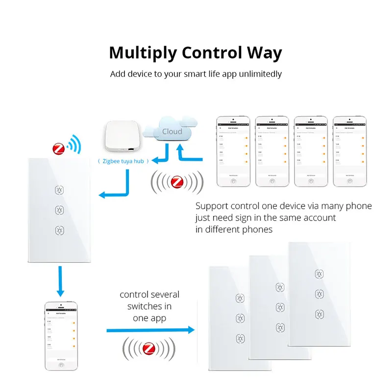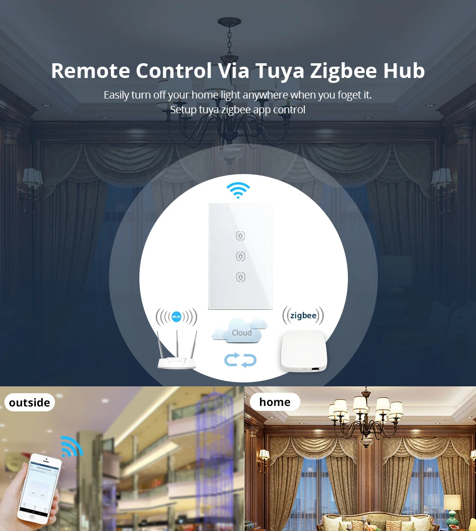 -Переключатель Zigbee: Может использоваться в сочетании с шлюзом zigbee, умным лампочкой-светильник, датчик zigbee и т. д., пользовательский контроль весь Домашний Светильник ing.-Пульт дистанционного управления Smart App: удобно управлять светом с помощью приложения Tuya независимо от того, где вы находитесь. Кроме того, вы можете легко поделиться им со своей семьей, чтобы управлять огнями вместе с приложением Tuya.-Голосовое управление без рук: совместим с Amazon Alexa и Google Home для легкого голосового управления, когда ваши руки не свободны, обеспечивая вашу умную жизнь с гораздо большим удобством.-Не требуется Нейтральный: сенсорный светильник с переключателями 1/2/3 особенно подходит для управления светильник ing.-Контроль качества: один ключ управления s мульти переключатели. Установите свет дома и офиса, чтобы автоматически выключить выключатели, когда вы выходите. Экономьте время и мощность.-Настройка таймера: Управляйте устройствами в любое время и в любом месте с помощью приложения Tuya/Smart Life, разумно Управляйте своим домом и офисным освещением с помощью функции таймера в приложении Tuya.-Американский тип с 120*72 мм закаленным кристаллом