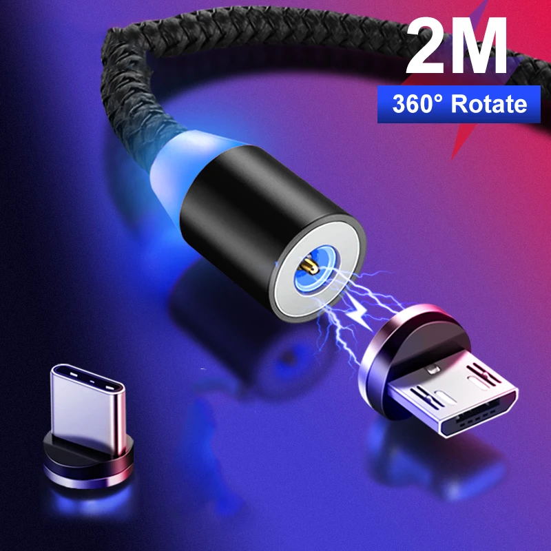 Зарядный кабель Micro USB Type-C, магнитный, со светодиодной подсве...