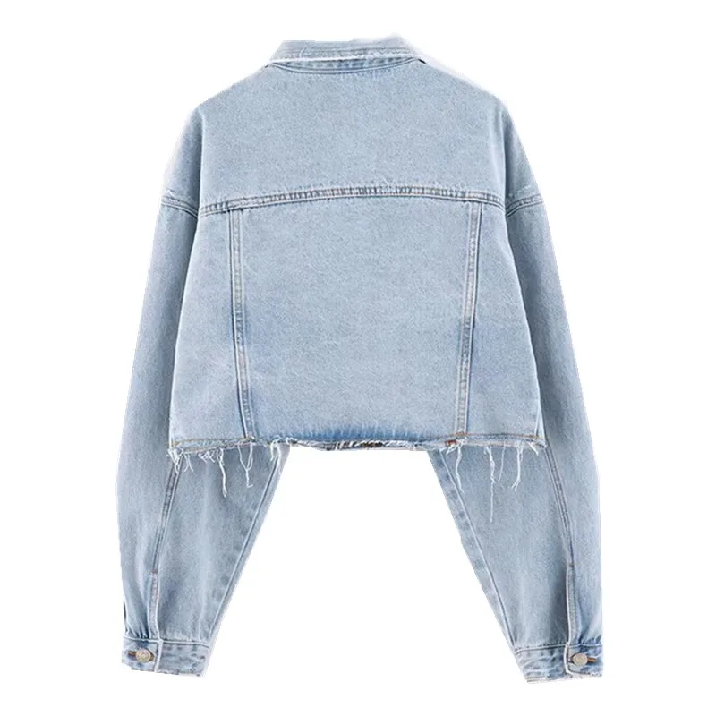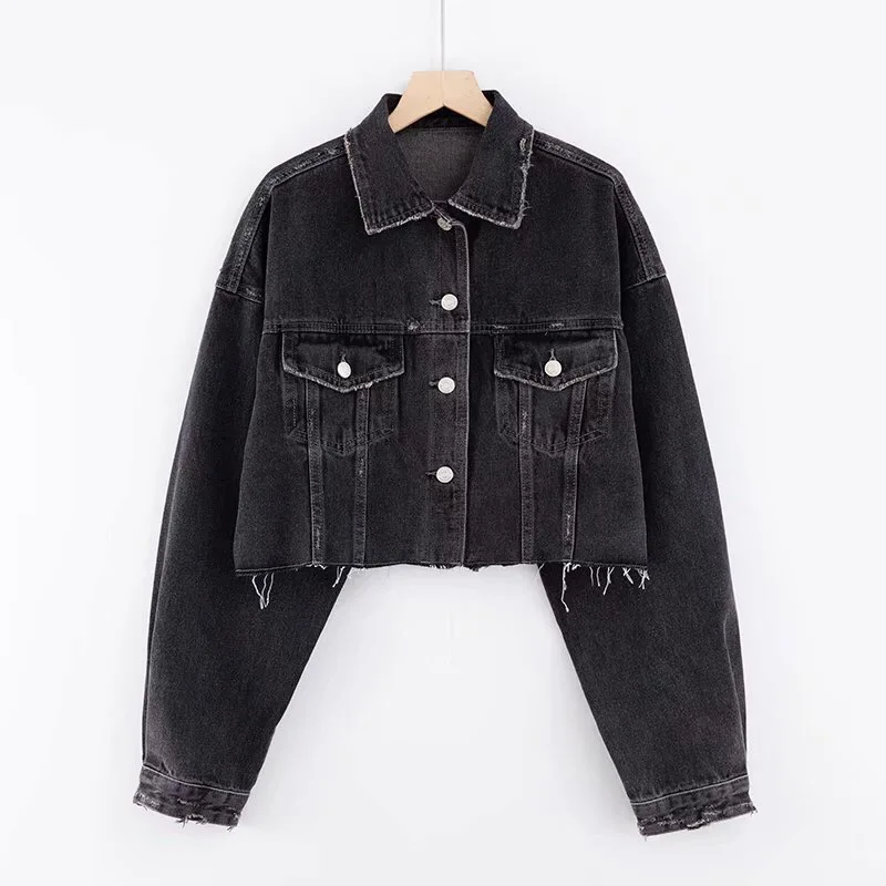Женская джинсовая куртка, Короткая свободная однобортная джинсовая куртка с отворотами и карманами, осень 2020