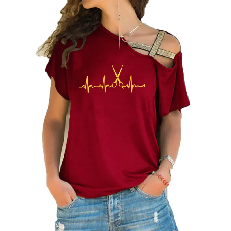 Женская футболка с коротким рукавом, летняя футболка для парикмахеров, с асимметричным подолом и перекрестной шнуровкой