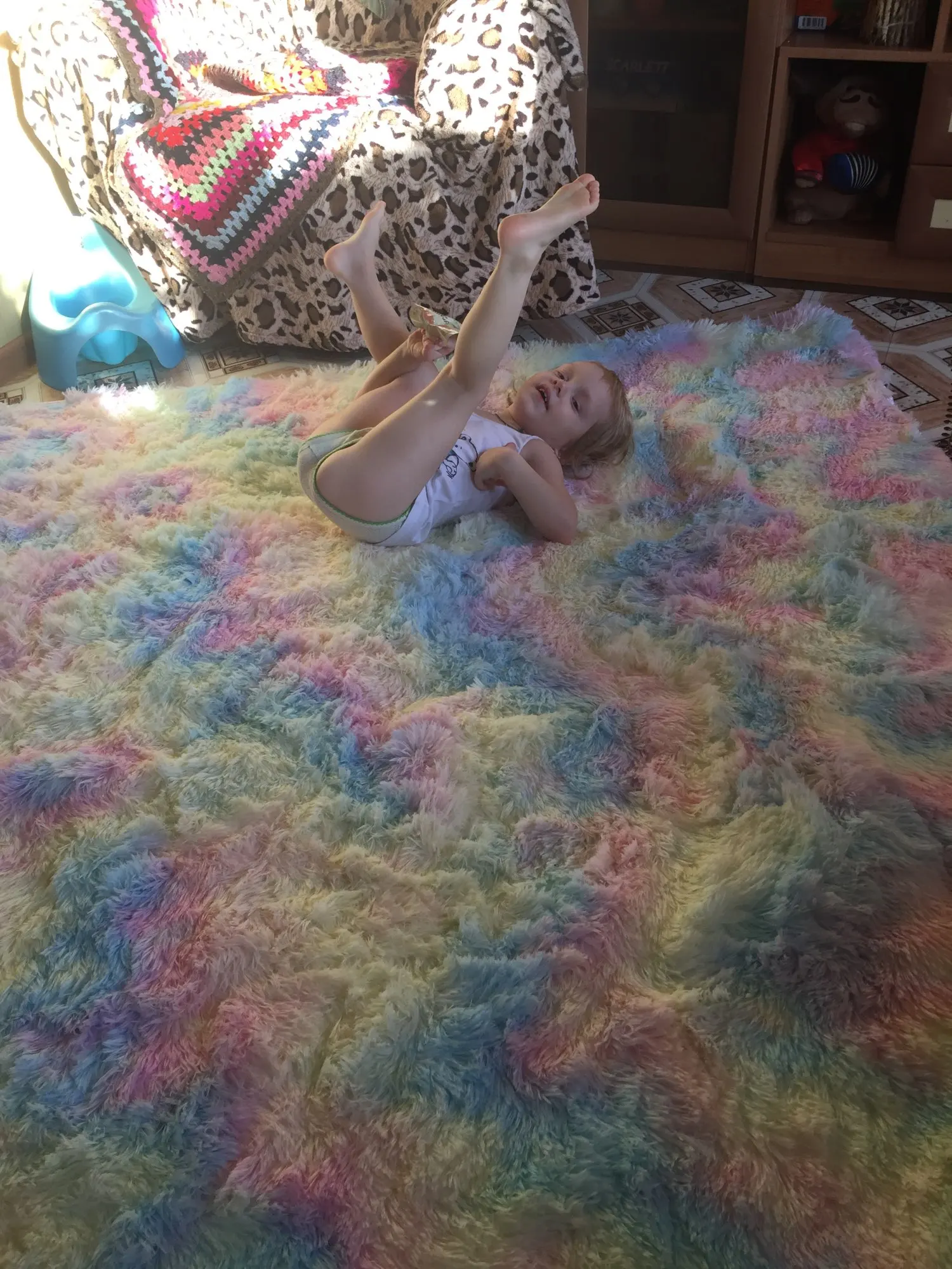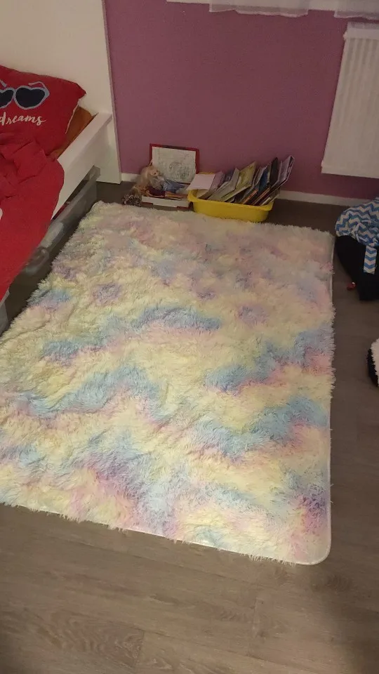Красивые цвета и очень пушистые. Моя дочь будет в восторге с тех пор, как она хочет Радужный ковер