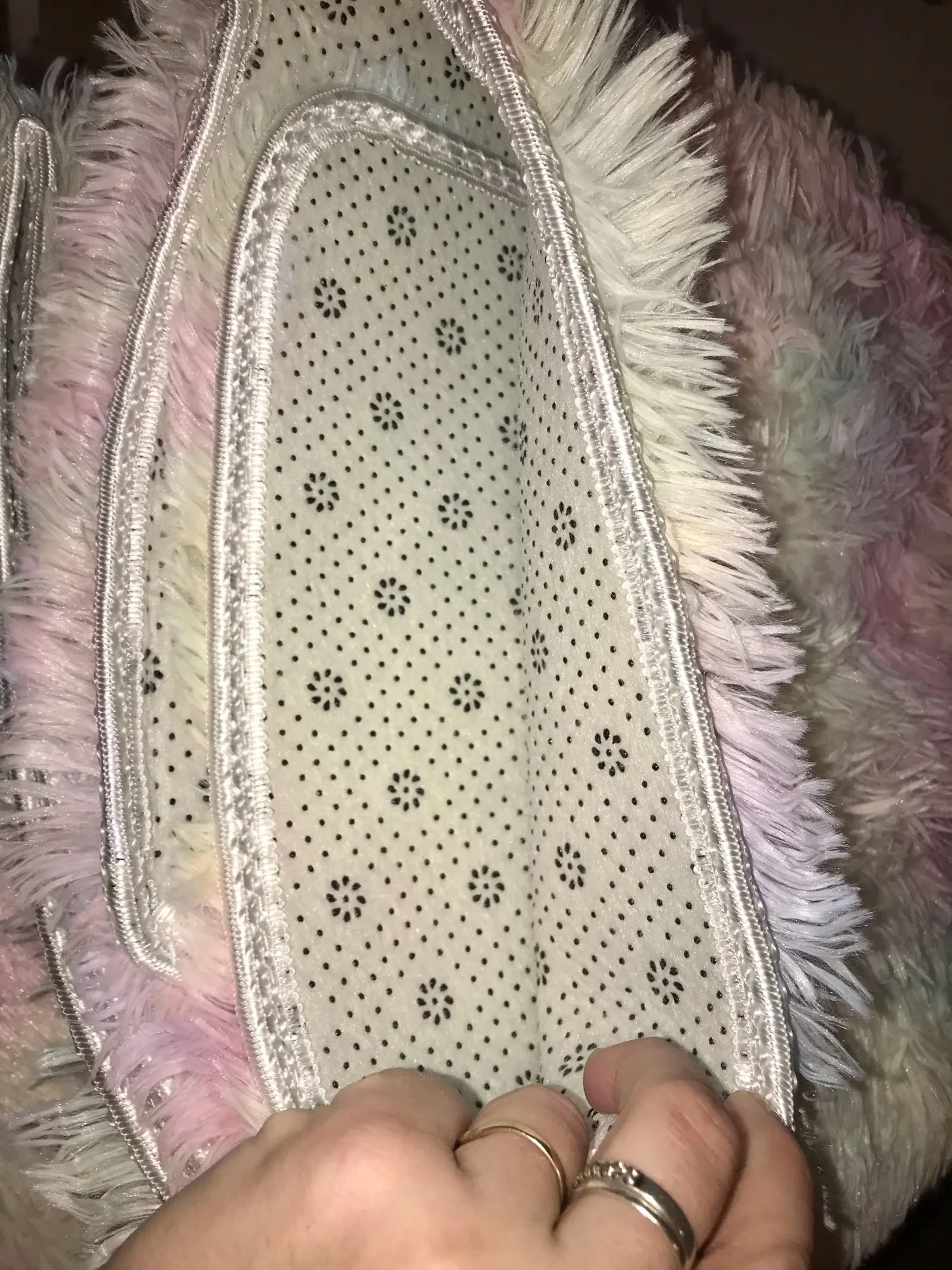 Красивая вещь, но качество не очень хорошее. Очень легкий и мягкий материал, как коврик для ванной. Я ожидала более крепкую подкладку для коврика.