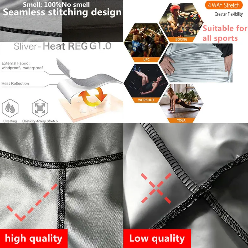 Супер быстрая потеря веса: Пот-рубашка усиливает потоотделение, сохраняя тепло вашего тела, это делает ваш животик и жилет жир сумасшедшим горящим во время тренировки, нагревая мышцы и мобилизует жировые клетки, серебристая рубашка для сауны в 5 раз больше, чем обычно. Увеличивает метаболизм в вашем теле, чтобы выпотеть вредные жиры и токсин.