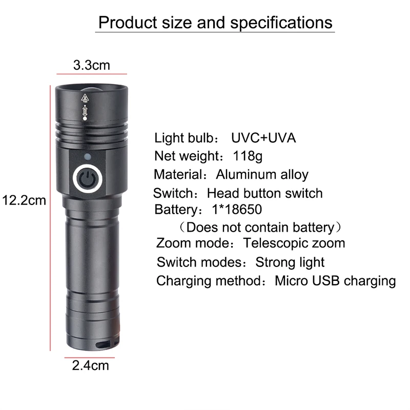 UVA UVC светодиодный фонарик, 3000LM водонепроницаемый, светодиодный, стерилизация, масштабируемый, переносная маска, дезинфекция