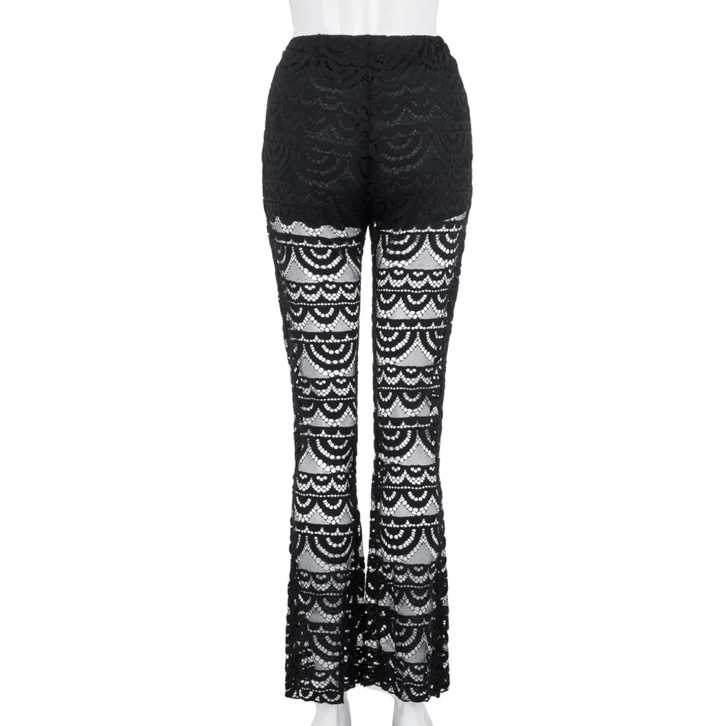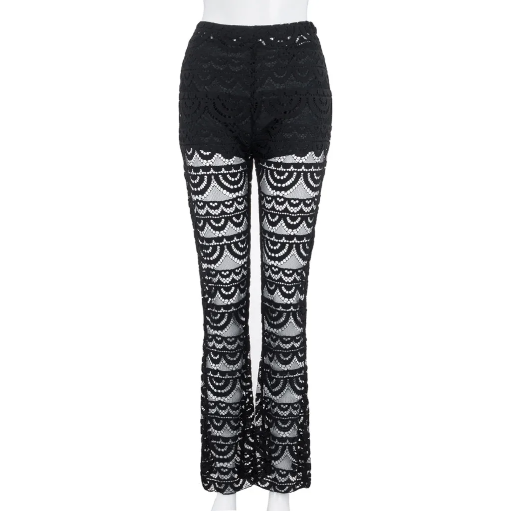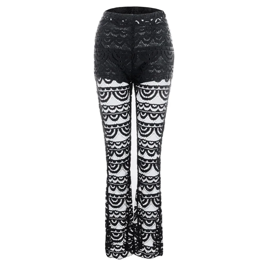 Модные Женские однотонные кружевные сетчатые повседневные Длинные свободные пляжные расклешенные брюки со средней талией # p3