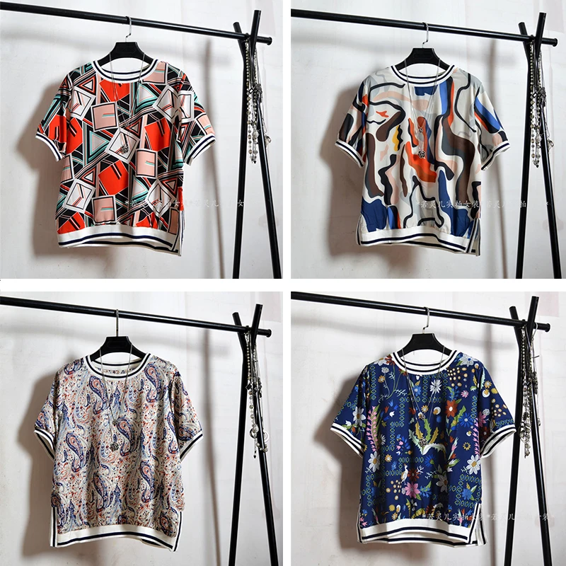 Женские свободные блузки с коротким рукавом, винтажные топы с принтом, женские рубашки с коротким рукавом, женские топы, лето 2020