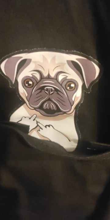 Майка классная. Чуть не угадал с размером, но сам виноват. Материал приятный на ощупь. Единственное что - факи собаки видны в любом положении.