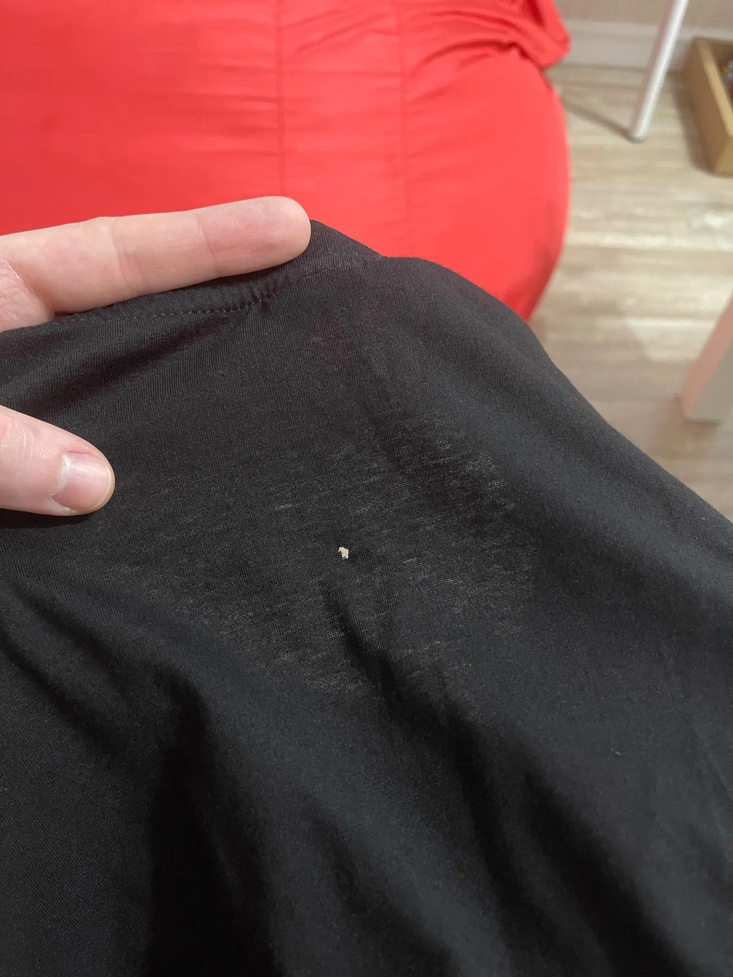Заказала самый маленький размер из предложенных S, футболка оказалась огромная, теперь только дома носить, в некоторых местах торчат нитки.